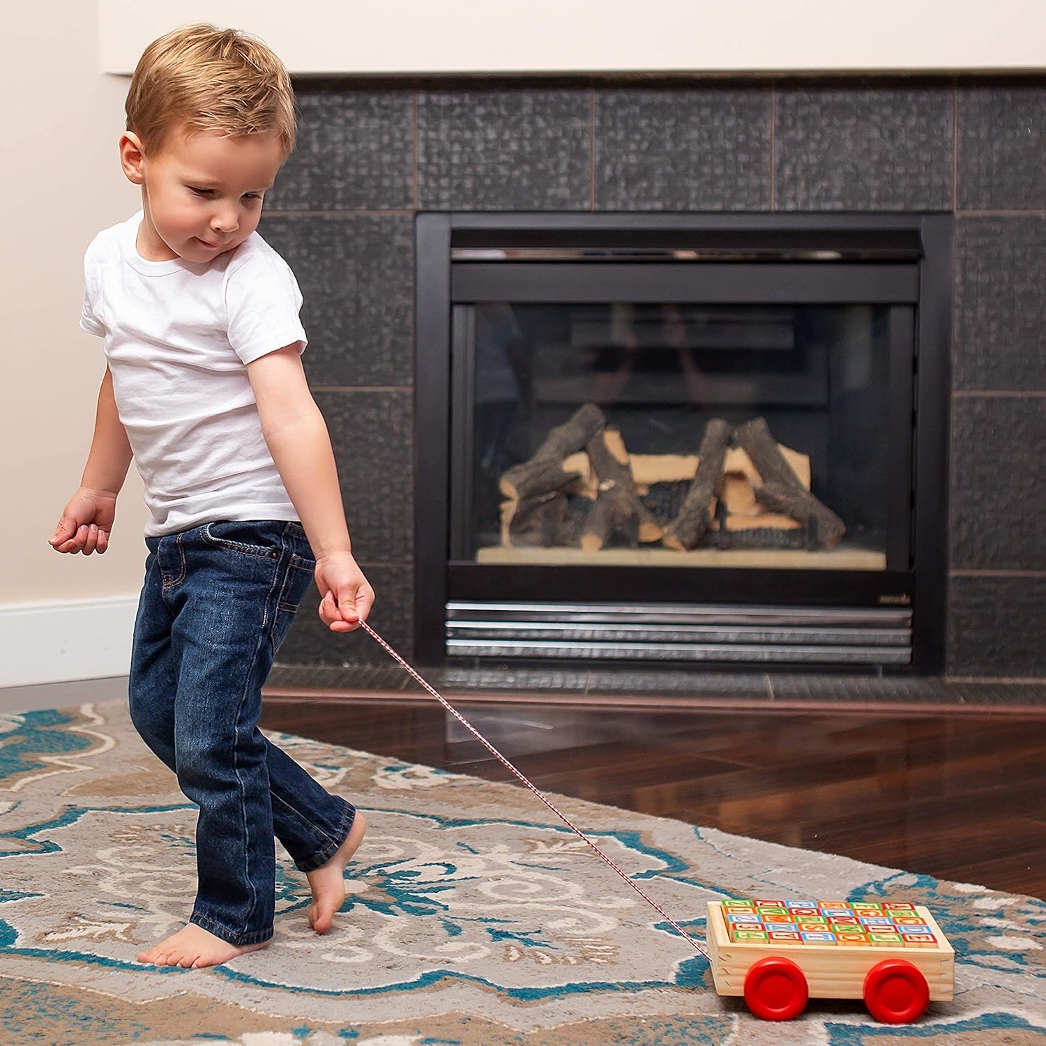 Building Blocks for Toddlers 1-3 Years Old, 30 Large Stackable Wooden Baby Blocks with Alphabet and Number Icons on Every Side, Toy Wagon Included