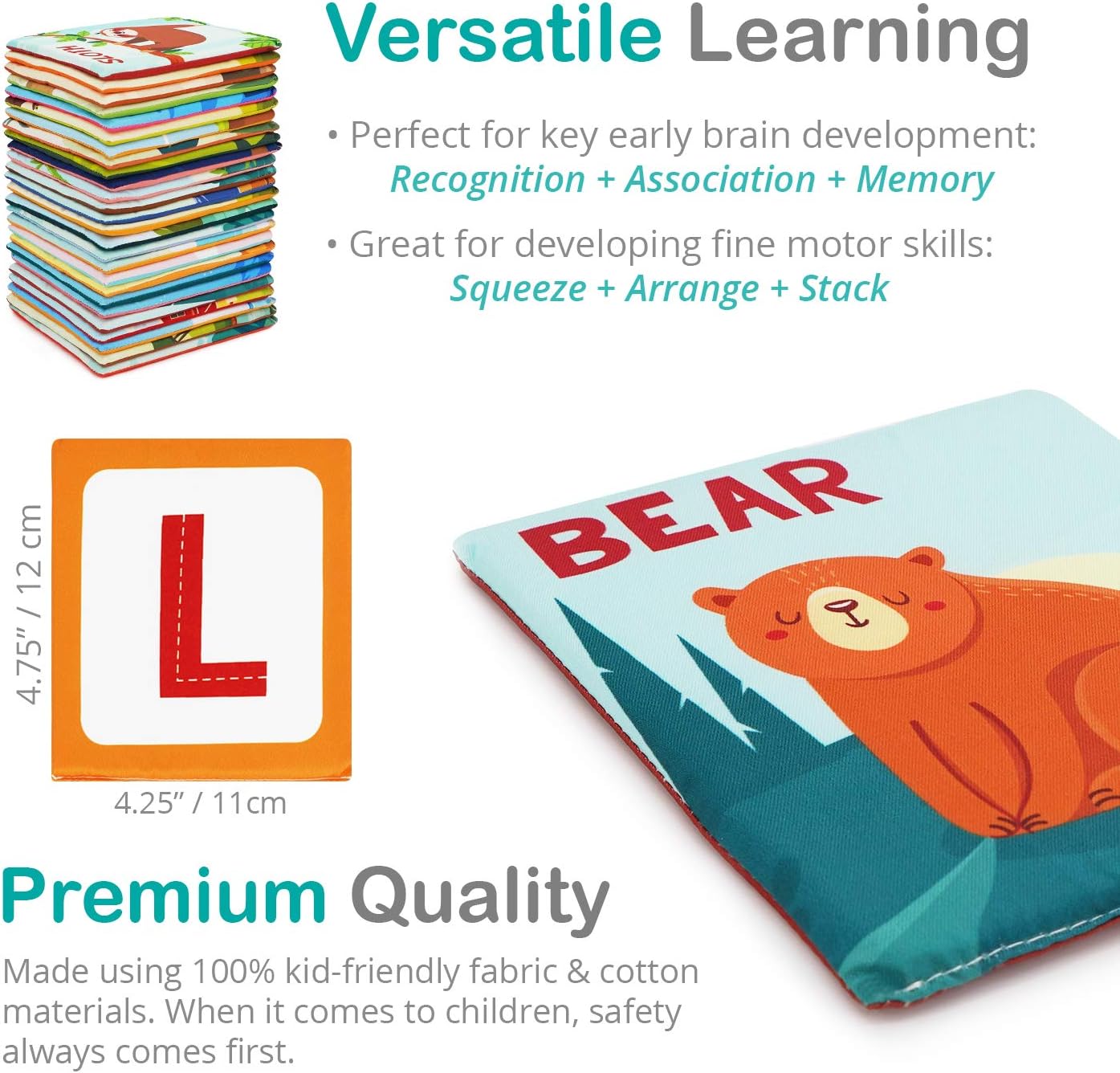 Zoo Alphabet Cards | Soft Alphabet Flash Cards, Educational Early Learning Infant Toys for Babies Infants Toddlers Boys Girls Kids Over 0 1 2 3 Years Old | My First ABC Animal Cloth Cards