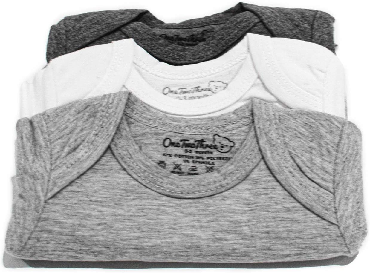 - COMFORTABLE DESIGN Soft comfortable fabric features 4 way stretch to hug your baby's body Bodysuits crafted with expandable necklines that make it easy to get over baby's head. 3 color-matched metal snaps for secure closure ensuring that they don’t open when crawling or walking. Tagless labels – All 123 bear bodysuits are printed with tagless labels to ensure there is no itch on your baby’s sensitive skin.