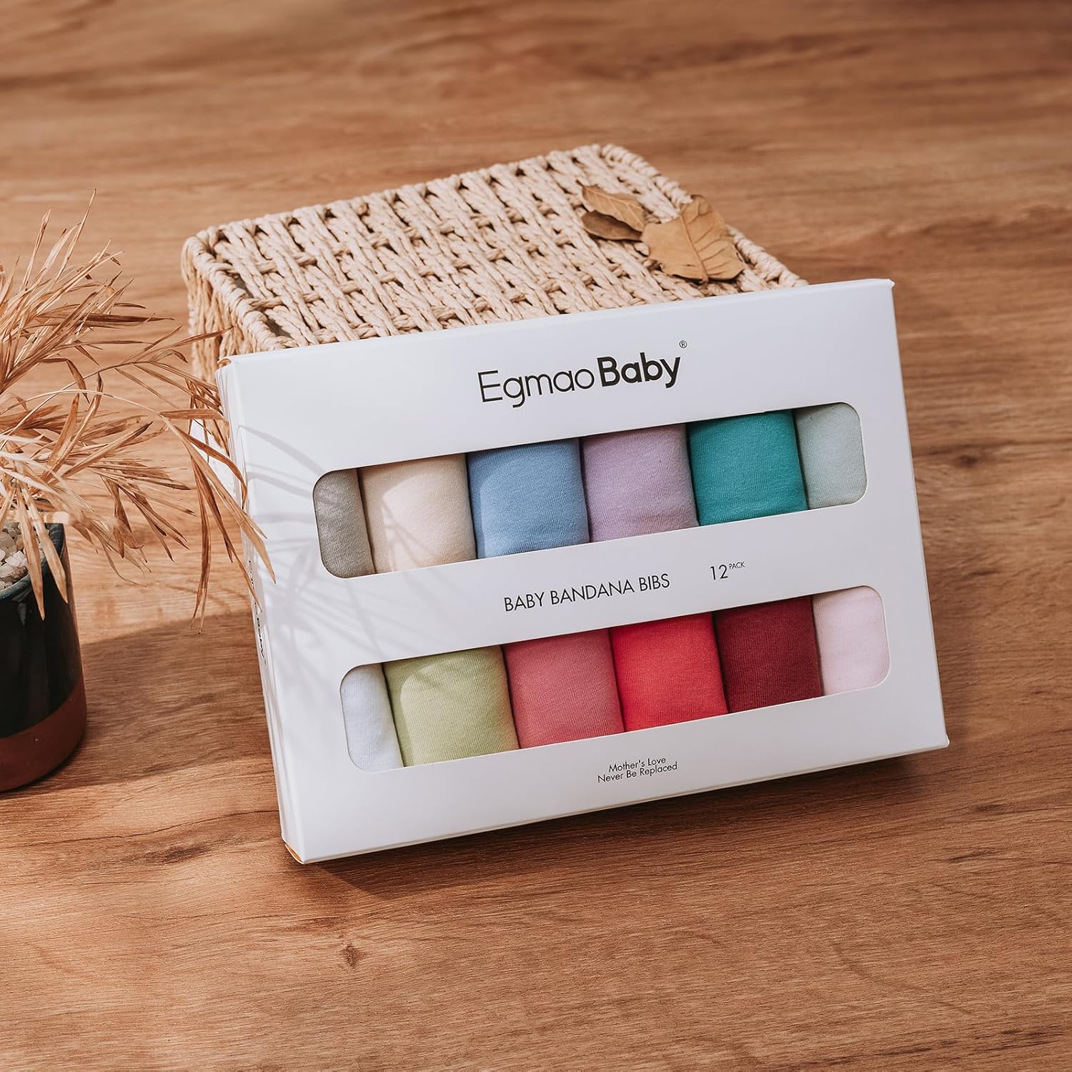 - 12-Pack Baby Bandana Bibs - Egmao baby bibs are exclusively designed to match baby boy girl daily outfit.These bandana bibs with skin-friendly touch for the extra soft and breathable fabric.The bib soaks up all drools and spits to keep you and your baby clean and dry, no more wet clothes