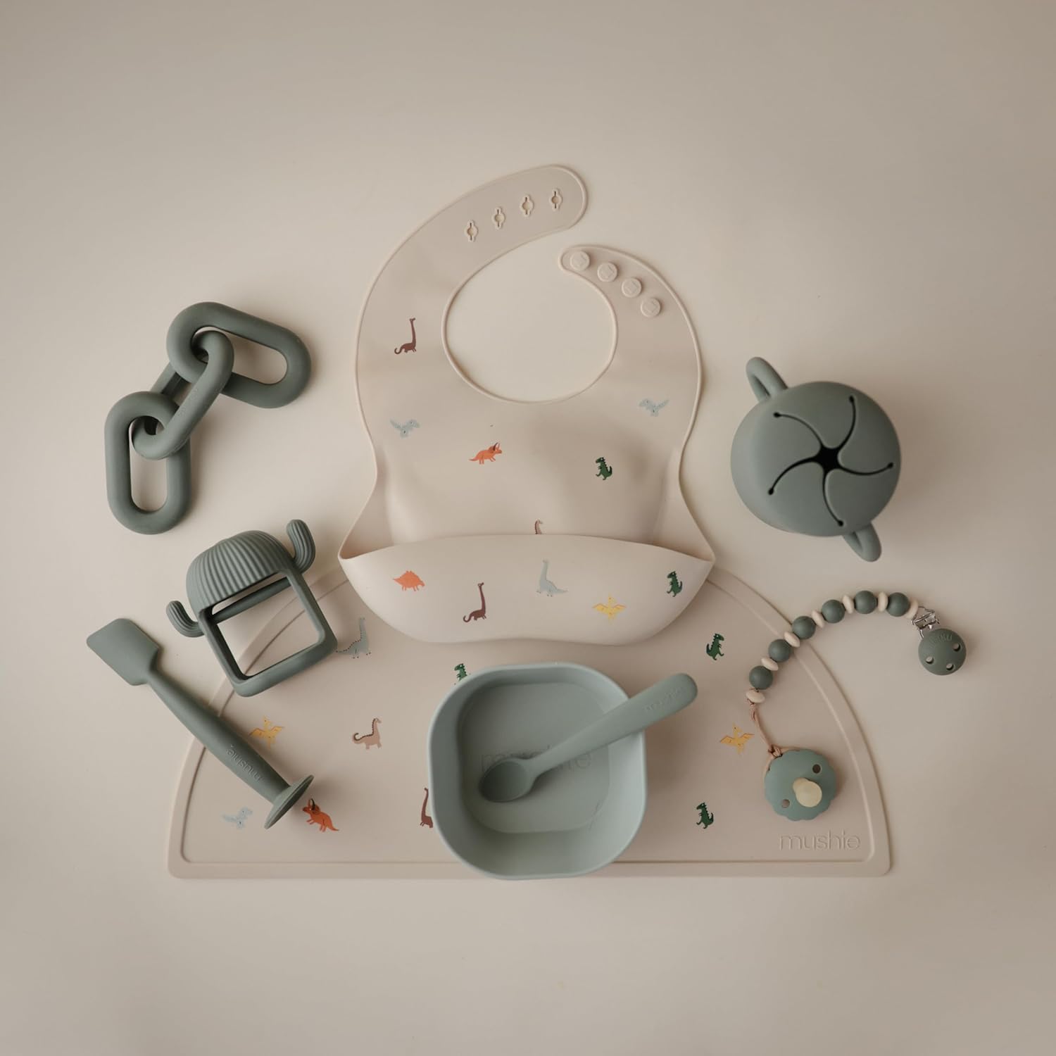 mushie Silicone Baby Bib | Adjustable Fit Waterproof Bibs (Dinosaurs)