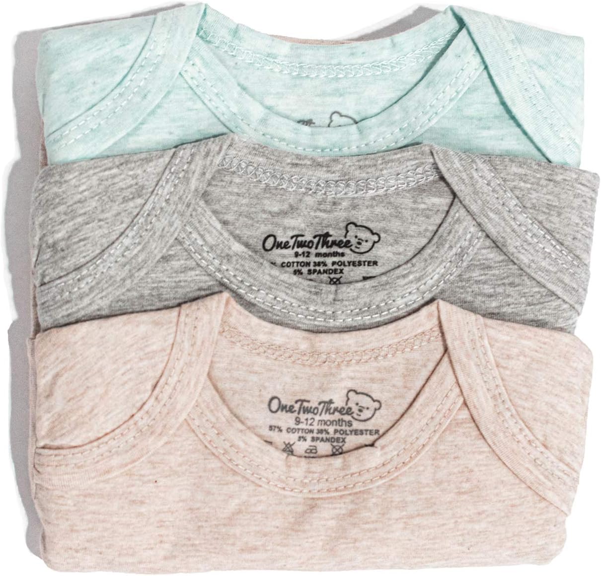 - Includes 3 cotton spandex short sleeve bodysuits