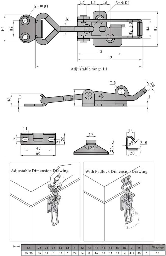 - Widely Usage--Anywhere you need to be able to adjust the closing force.Adjustable latch,convenient for operation universal toggle latch,widely used in different doors,toolbox,warped desk, trash cans,packing case,mechanical equipment,engineering machinery,etc.