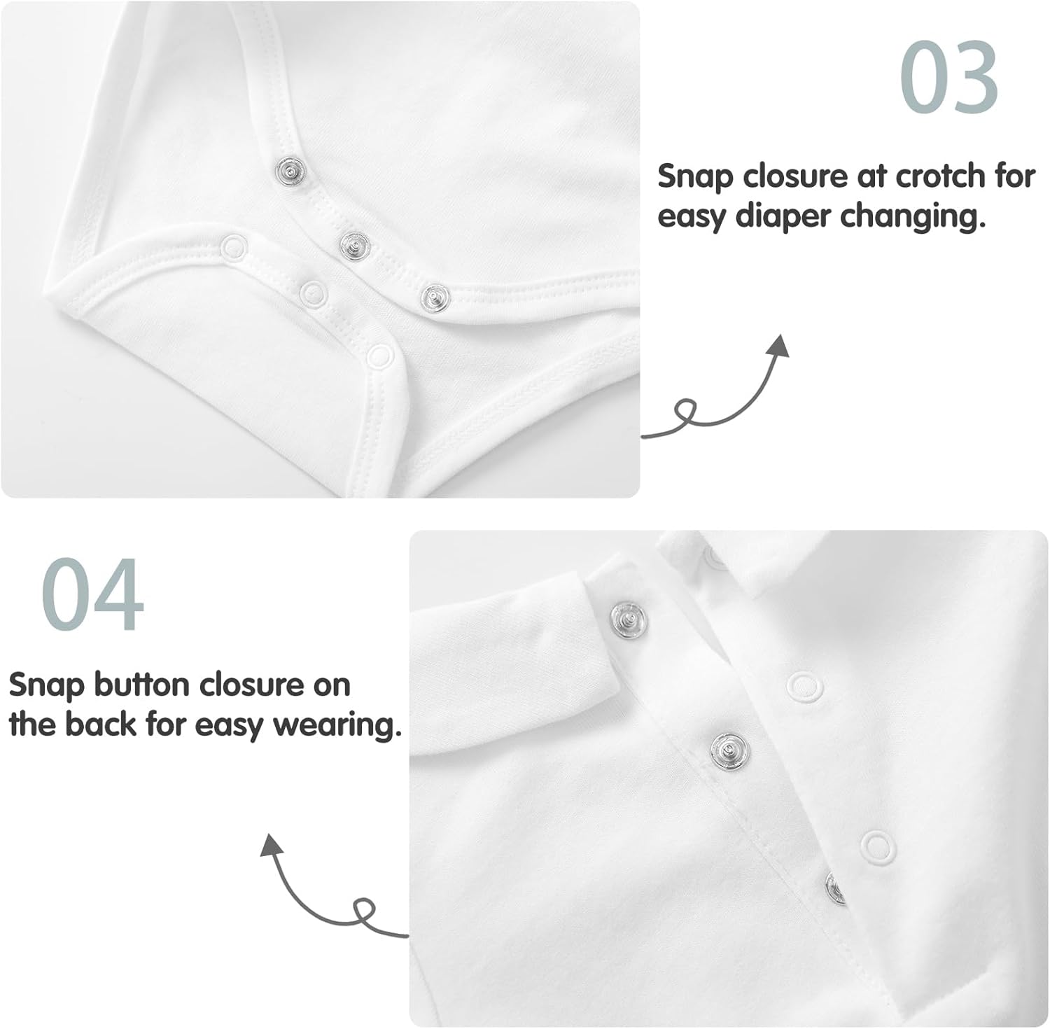 - QUICK WEARING & DIAPER CHANGING - Snap closure ensures easy wearing. 3 snaps at bottom make diaper changing hassle-free