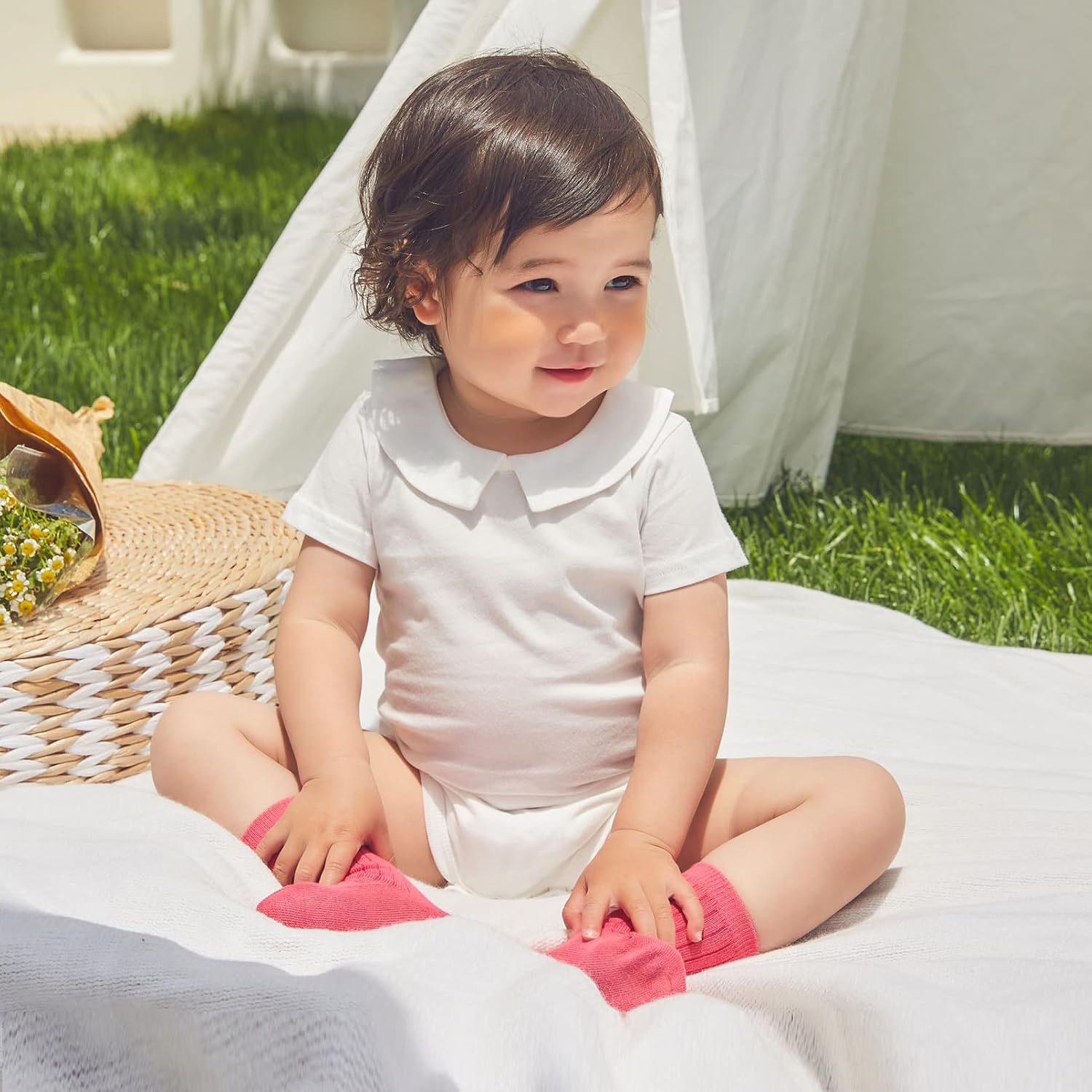 - UNIQUE SUMMER OUTFIT - Features solid color, sweety peter-pan collar, short sleeve, baby's stylish outfit for summer