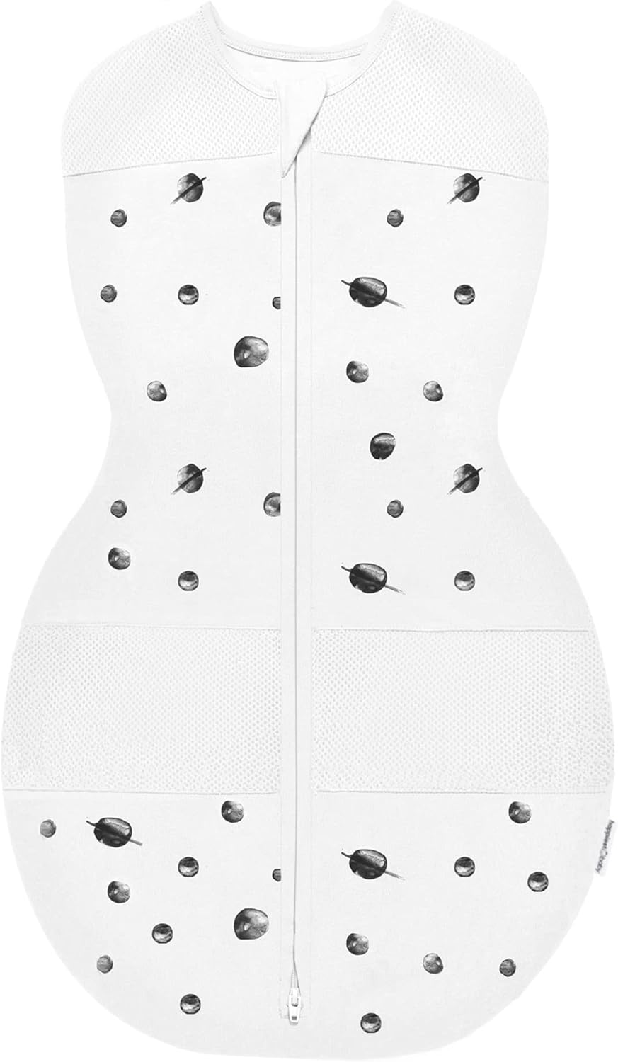Happiest Baby Sleepea 5-Second Swaddle - 100% Organic Cotton Baby Swaddle Blanket - Doctor Designed Promotes Healthy Hip Development (Ivory Planets, Large)