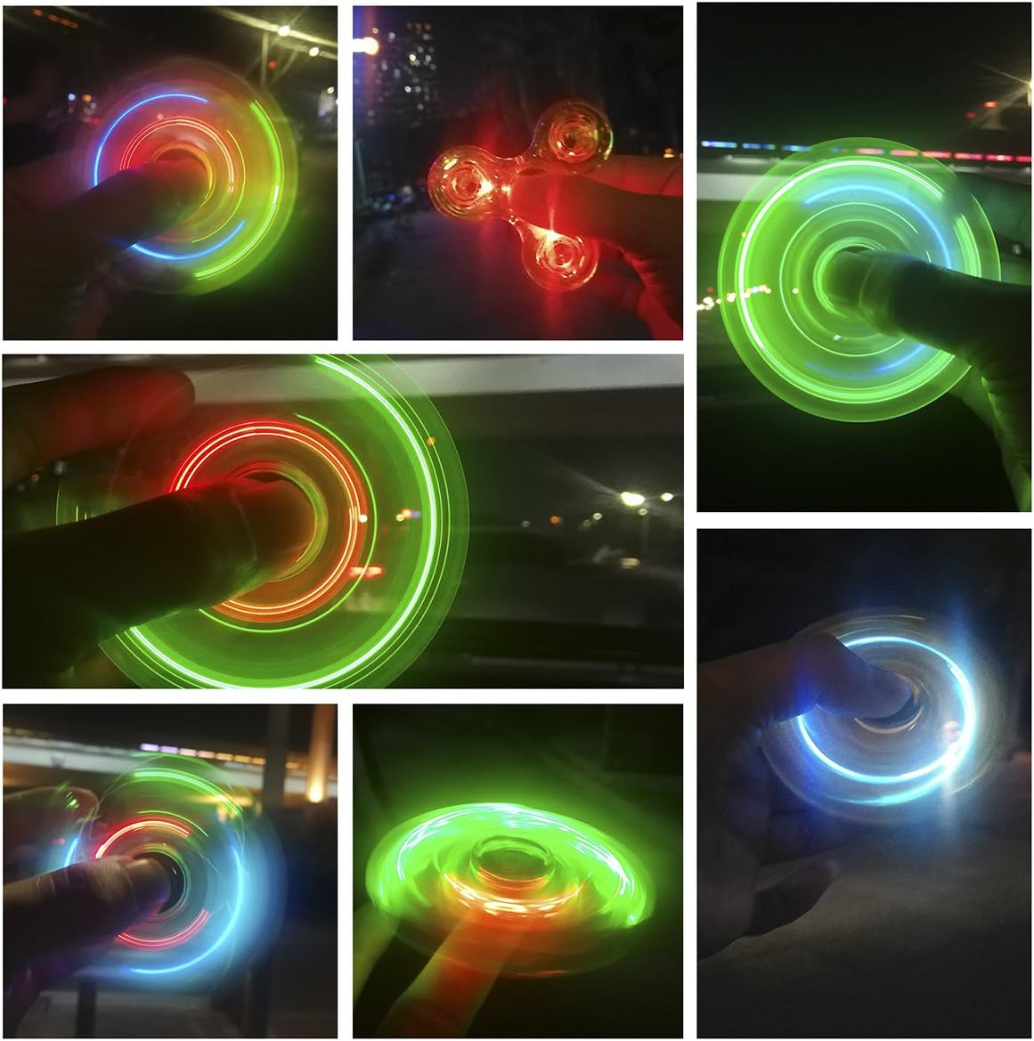 - 【SAFE AND FIRM MATERIAL】 These crystal ligh up fidget spinners are made of high quality crystal ABS material, boasts durability and a stunning appearance. Equipped with a premium bearing, it ensures a smooth and less noise experience while spining. With an average spin time of one minute, will bring you more challenges and fun. Each fidget spinner is packaged in a plastic box Individually.