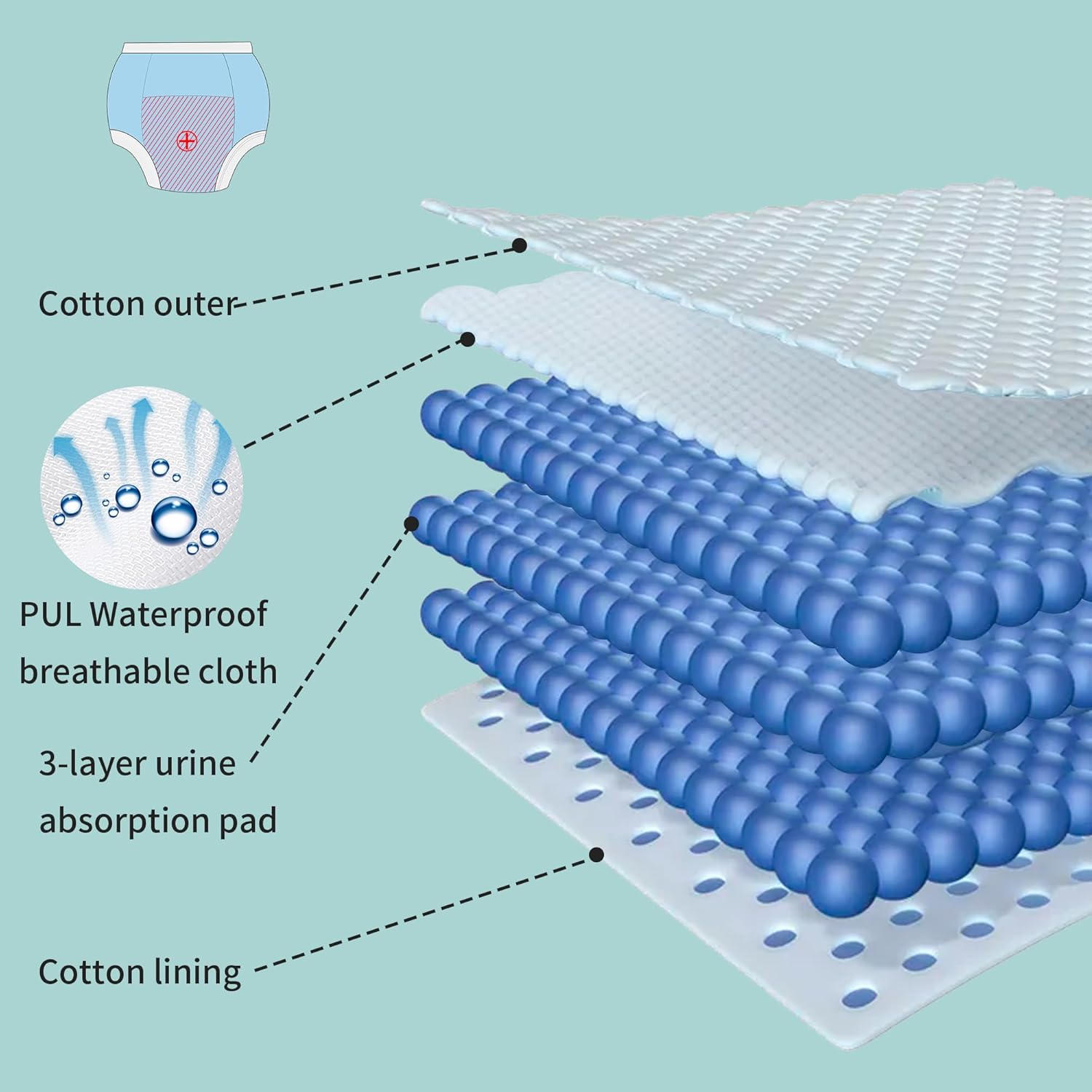 - 【Machine-Washable 10-Pack】Includes 10 pairs so you’re always ready for successful toilet training. For maximum absorbency, wash once before first use. After that, simply machine-wash in water up to 40 °C (no chlorine bleach) and tumble-dry on low.