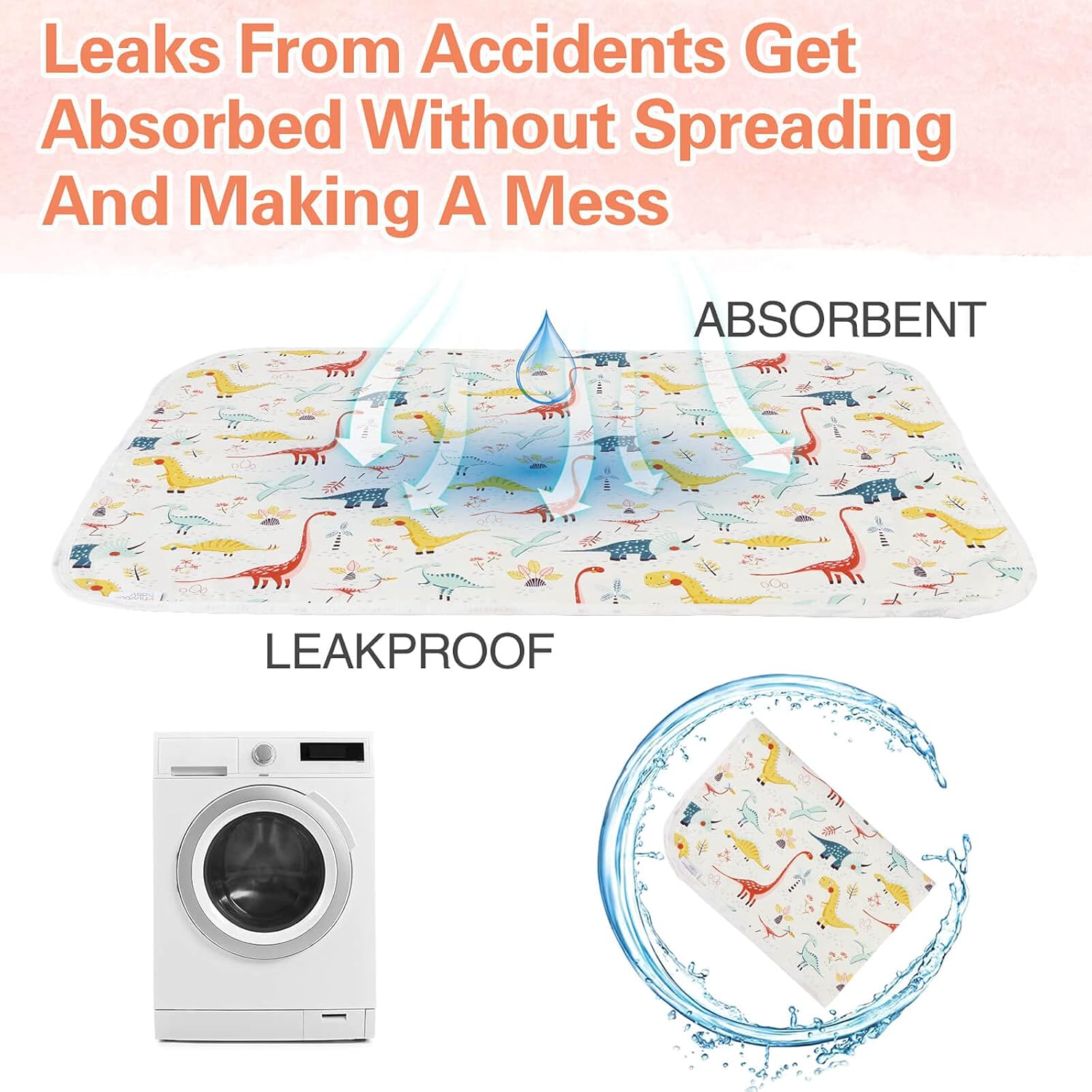 - Leak-Proof - Our baby diaper changing mat absorbs water quickly on the top and the second layer but doesn't leak out the bottom. Providing excellent protection against fluids, urine, baby spits up.