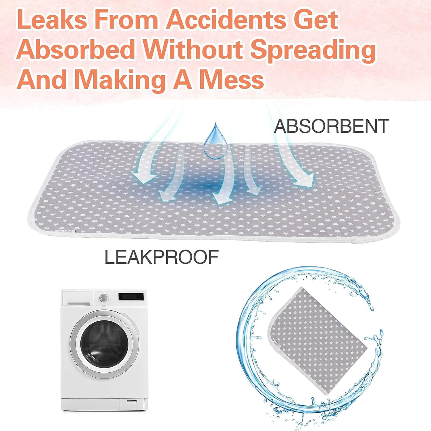 - Leak-Proof - Our baby diaper changing mat absorbs water quickly on the top and the second layer but doesn't leak out the bottom. Providing excellent protection against fluids, urine, baby spits up.