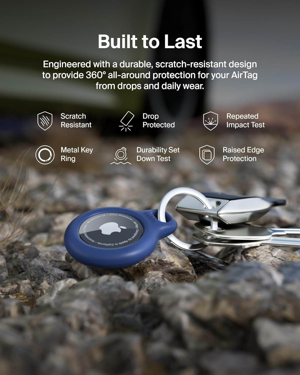 - SIMPLE and EFFECTIVE: This durable Belkin AirTag case is the perfect solution to keep your AirTag safe and secure while on the go; Easily and securely attach an AirTag to your keys, bookbags, pets, or luggage to ensure you never lose track of them