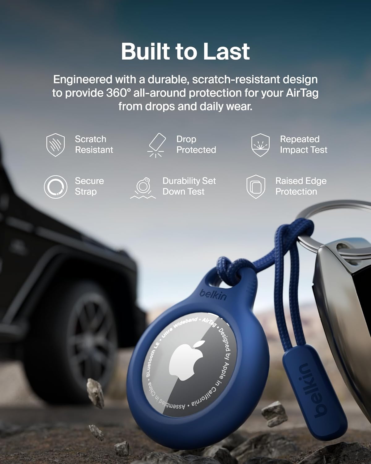 - THOUGHTFULLY DESIGNED: The Belkin AirTag case with strap firmly grips the edges of your AirTag while keeping personalized engravings visible in a high quality, elegant accessory