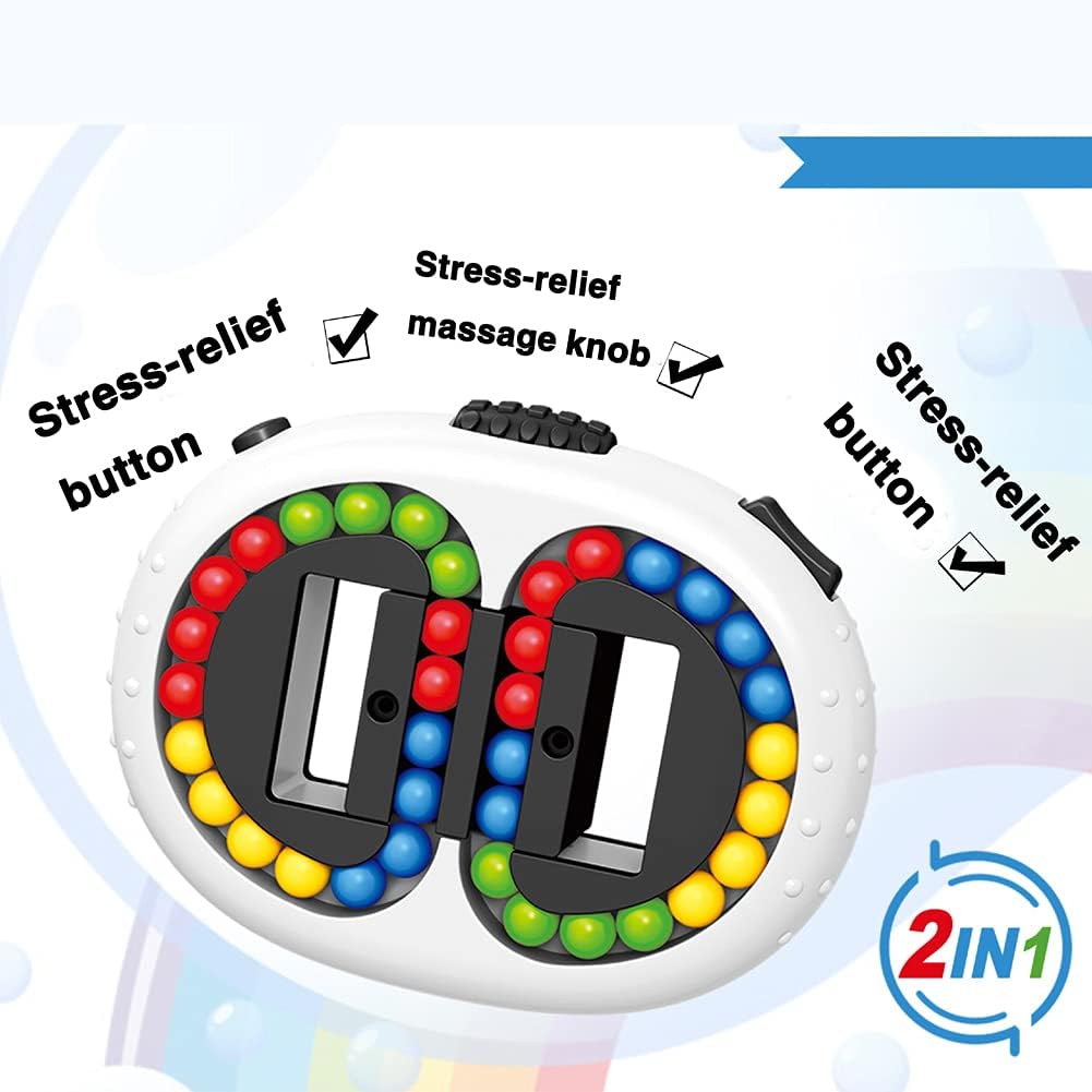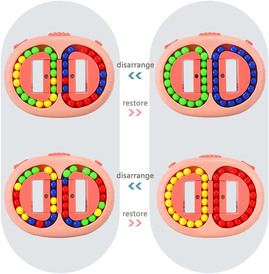 - 【Product features】 Rotating magic beantoy has 4 grooves on both sides,4 colors of beads,and horizontal axis moving in the middle.Disrupt the order of the beads of different colors,move the middle horizontal axis,and restore the beads of different colors to the same groove based on memory and spatial imagination.The puzzle and interesting gameplay can stimulate the brain to think,exercise the coordination of hands,brain and eyes.It is a great educational toy.