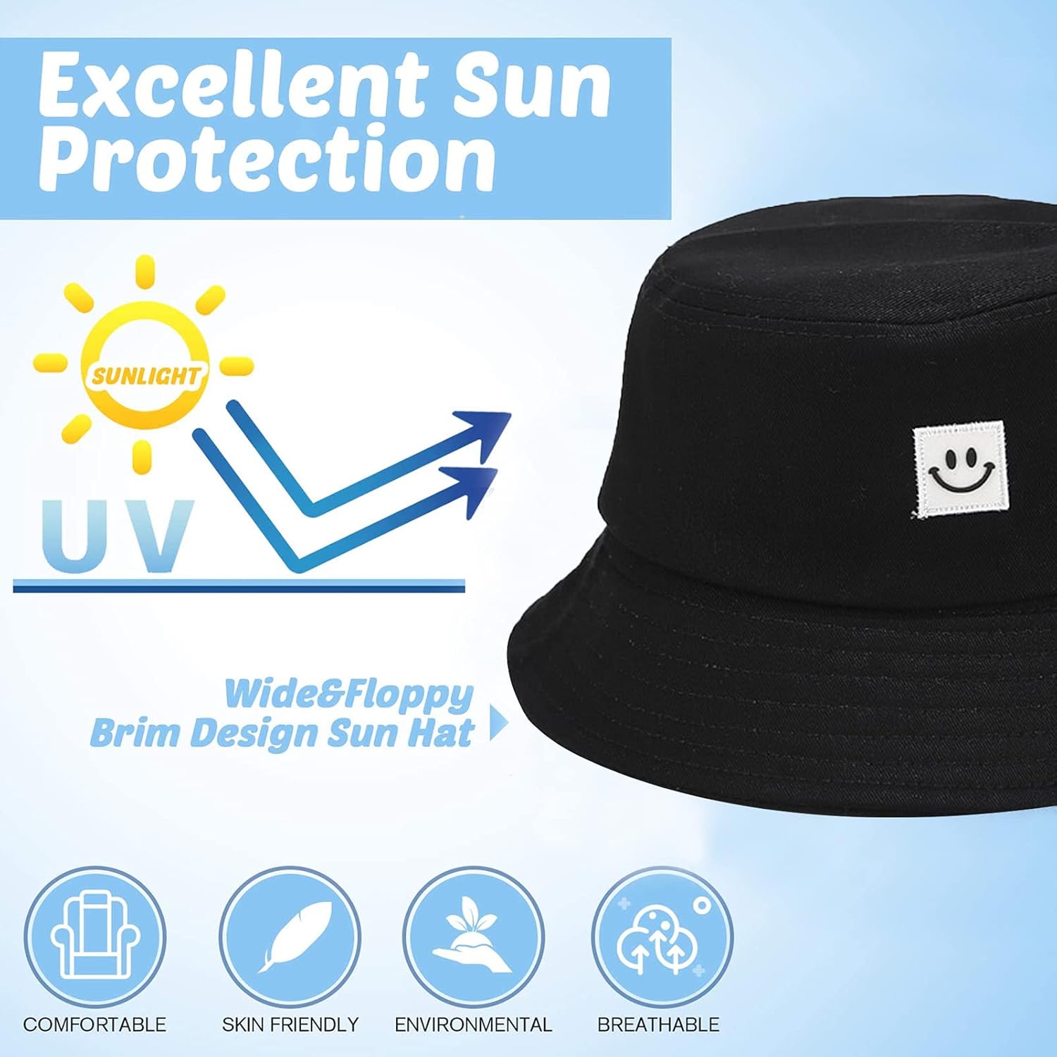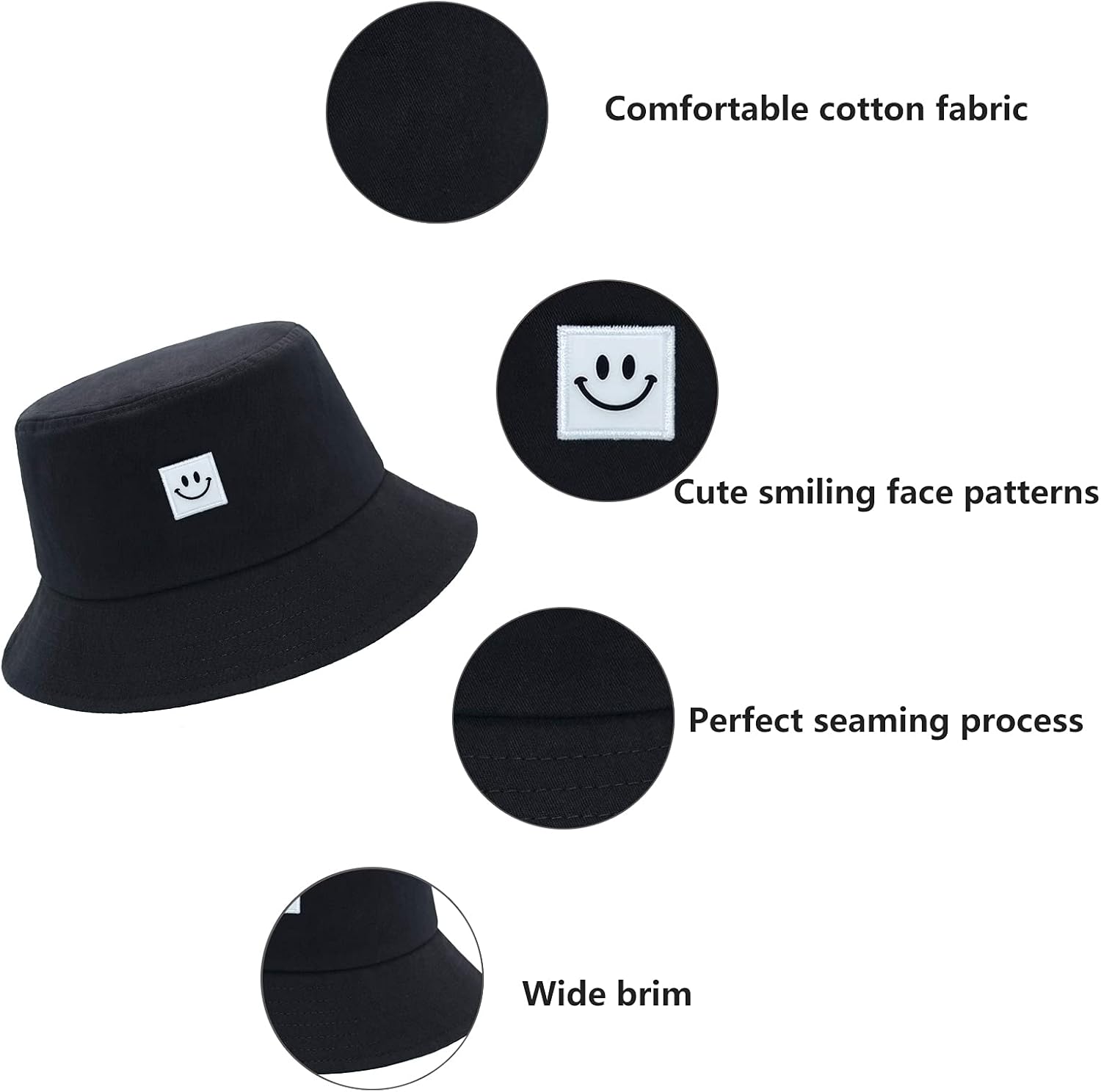 • 【Lovely and Stylish】Designed for unisex,our bucket hats come in various distinct colors to match your children individuality.The pretty smile logo makes it a great design.Easy to wear and pair with other clothes,suitably perfect for both boys and girls.Makes your kids more adorable, fashionable and attractive.Ideal gift for your cute baby.
