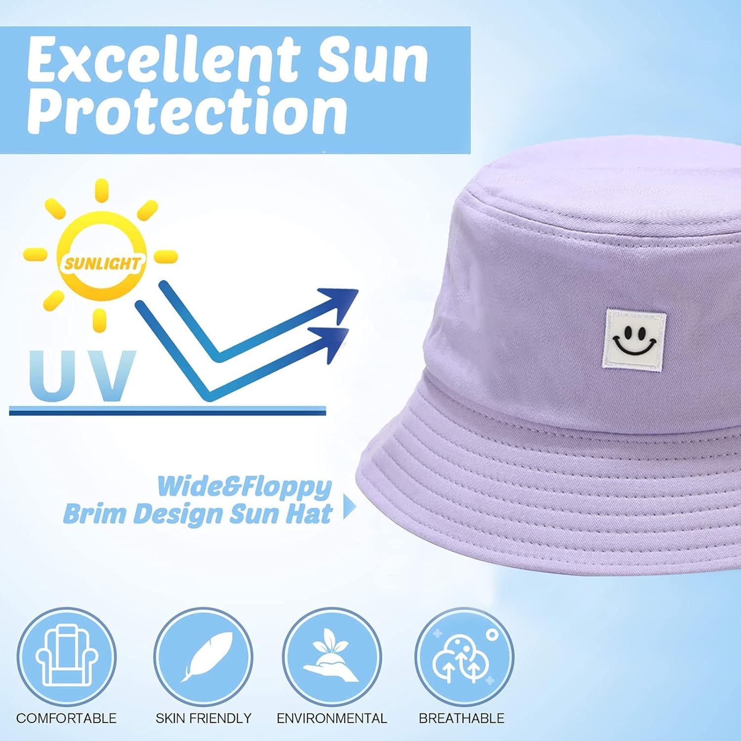 - 【Lovely and Stylish】Designed for unisex,our bucket hats come in various distinct colors to match your children individuality.The pretty smile logo makes it a great design.Easy to wear and pair with other clothes,suitably perfect for both boys and girls.Makes your kids more adorable, fashionable and attractive.Ideal gift for your cute baby.