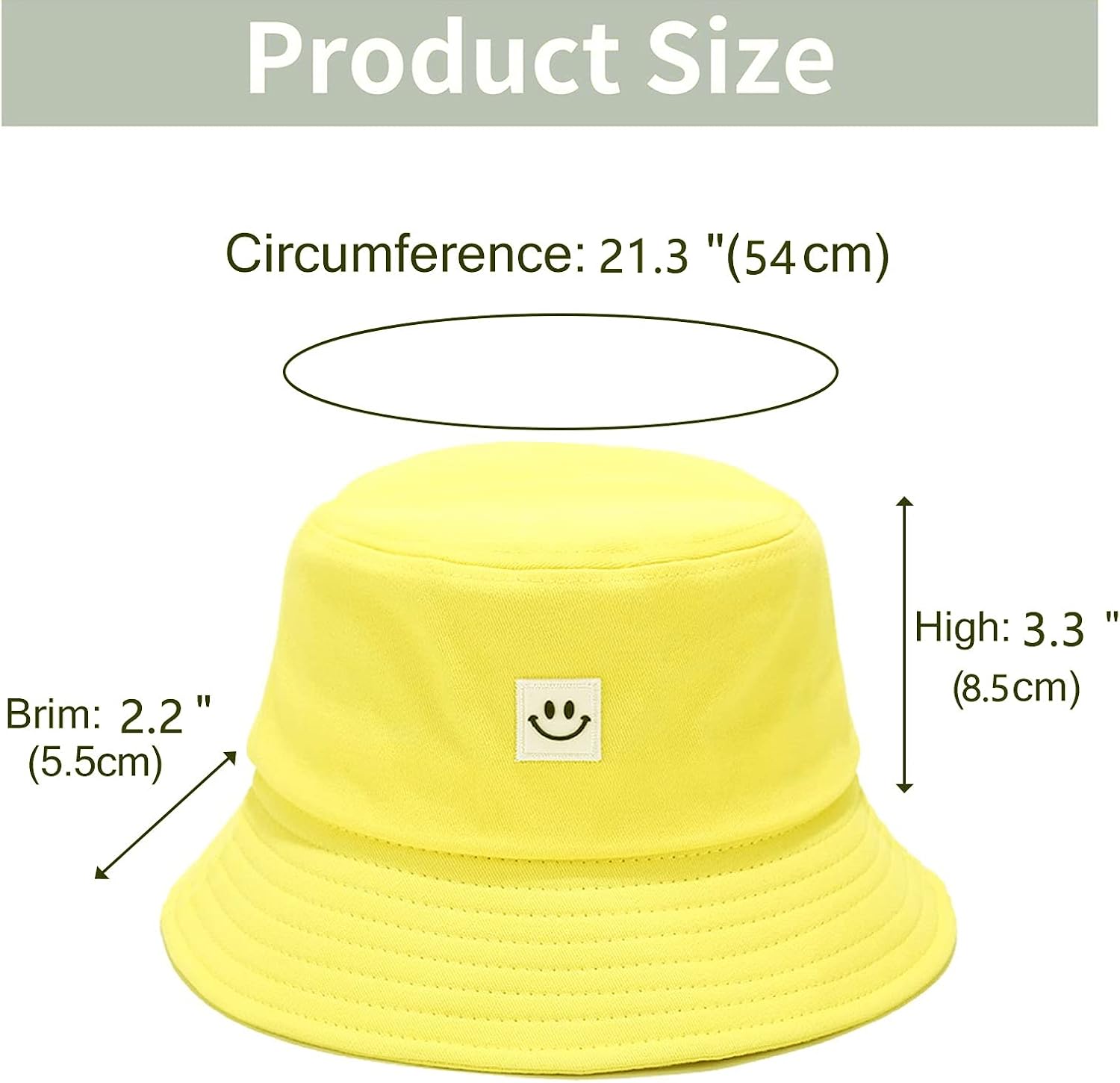 • 【Lovely and Stylish】Designed for unisex,our bucket hats come in various distinct colors to match your children individuality.The pretty smile logo makes it a great design.Easy to wear and pair with other clothes,suitably perfect for both boys and girls.Makes your kids more adorable, fashionable and attractive.Ideal gift for your cute baby.