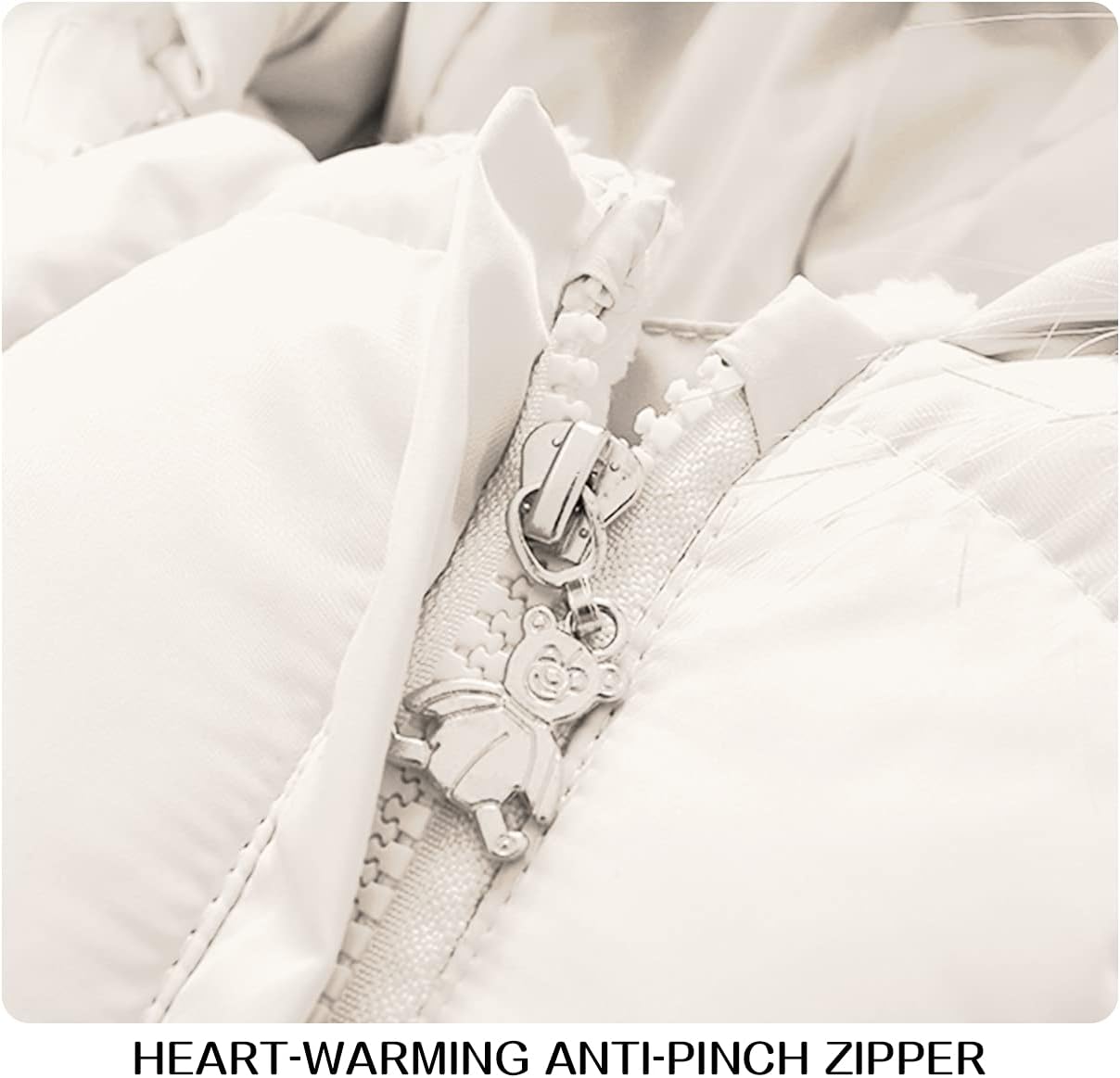- Warm Design: The newborn winter snowsuit keep baby's head and ears inside and warm when outing. The toddler snowwearcomes with gloves to keep your cute baby's hands warm. Note: The feet of 0-6 Month and 6-12 Month are connected and not detachable.