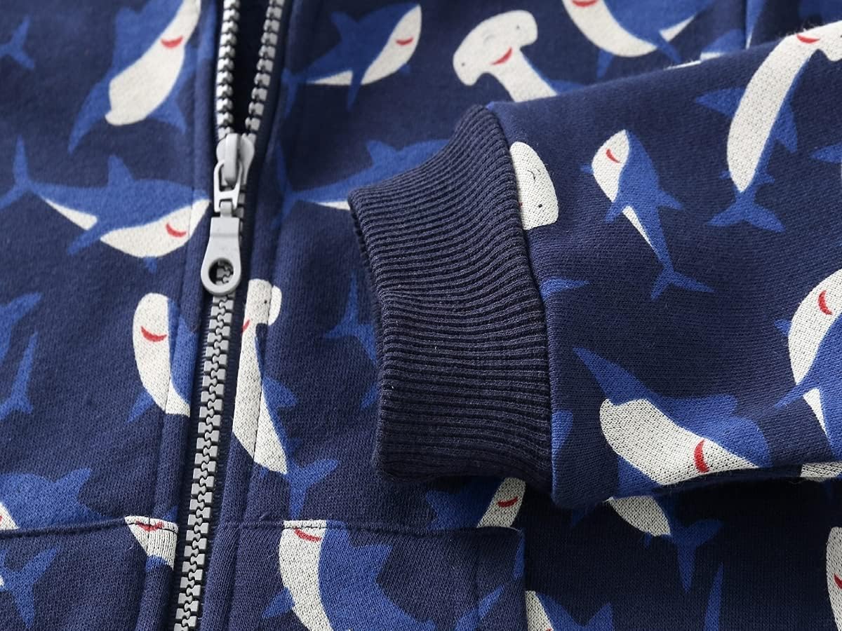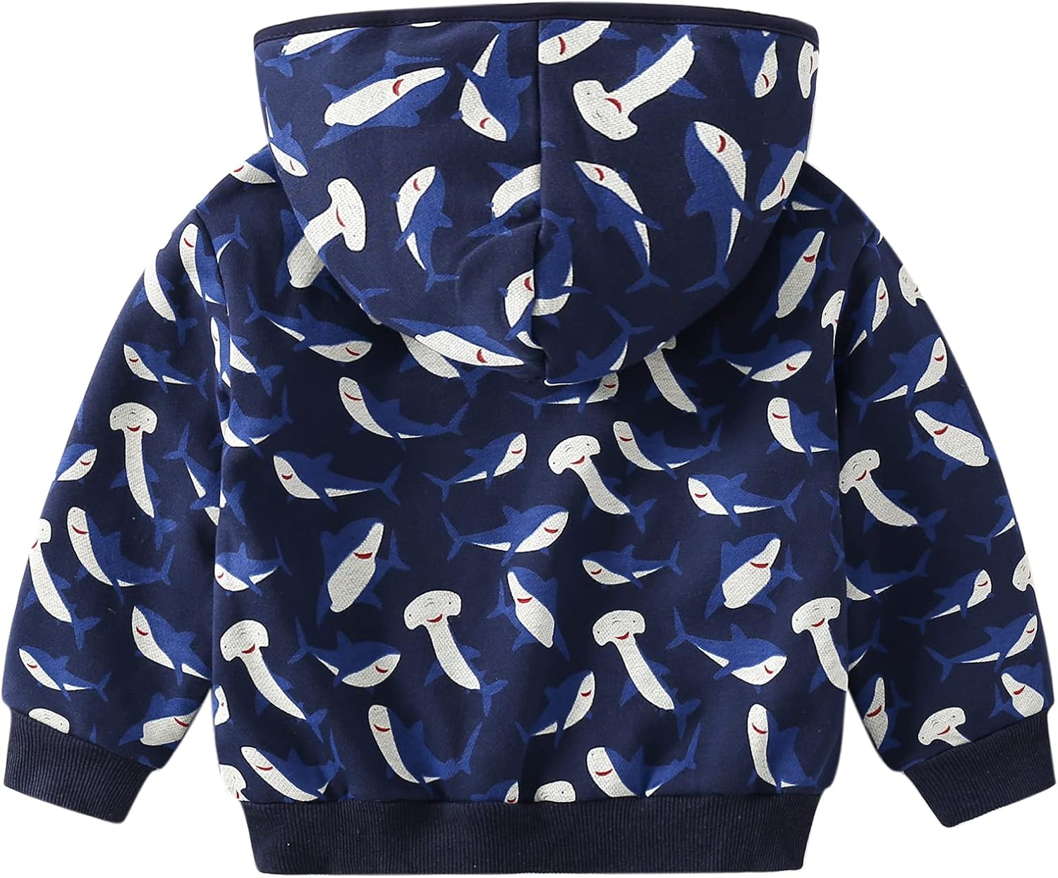 Toddler Boys Full Zip Dinosaur Hoodies Comfortable Sweatshirt