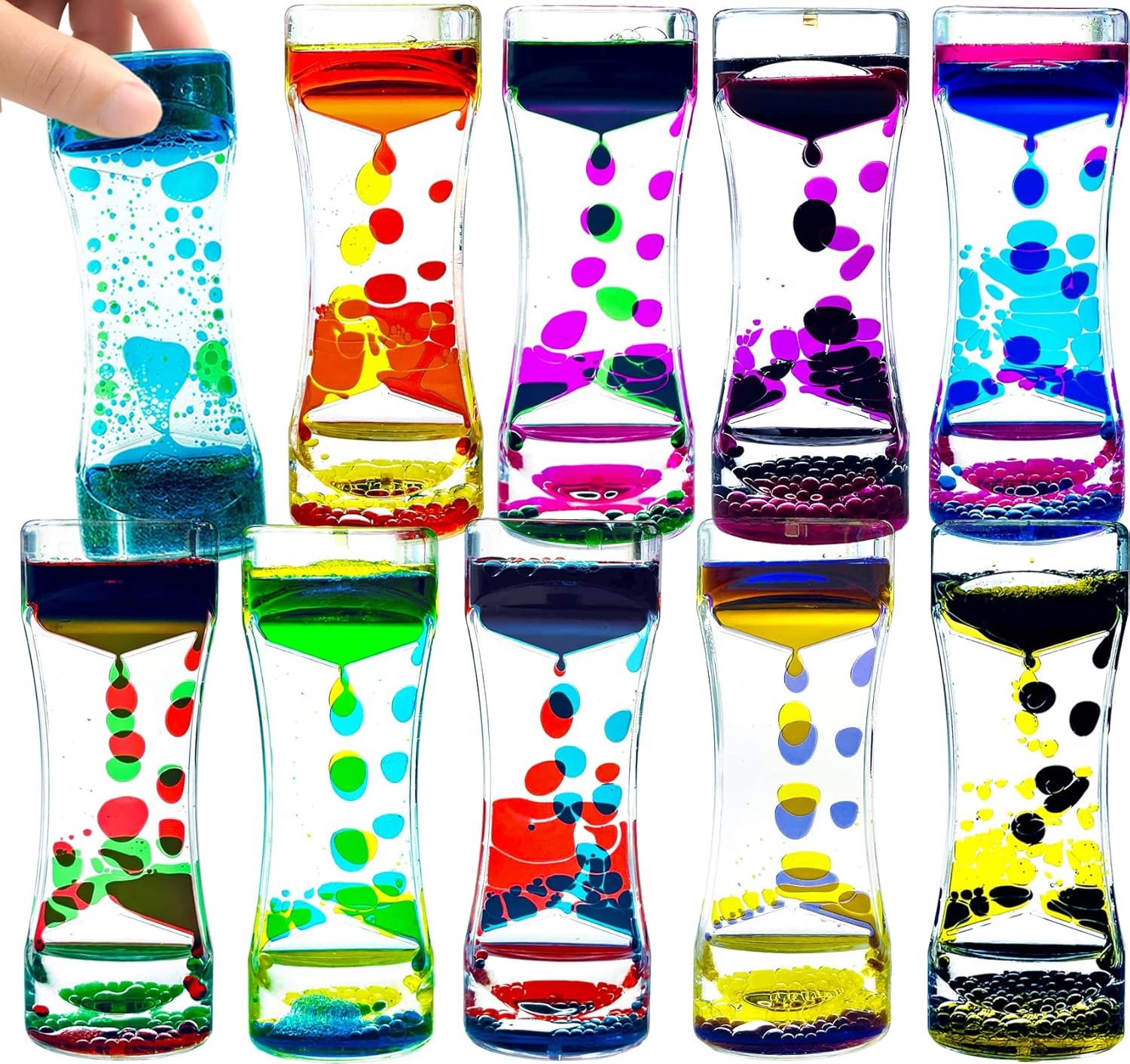 Liquid Motion Bubbler for Kids and Adults Pack of 10 Great Rainbow Series Liquid Bubbler Timer Sensory Fidget Relaxation Stress Relief and Anxiety Relief Relaxing Autism