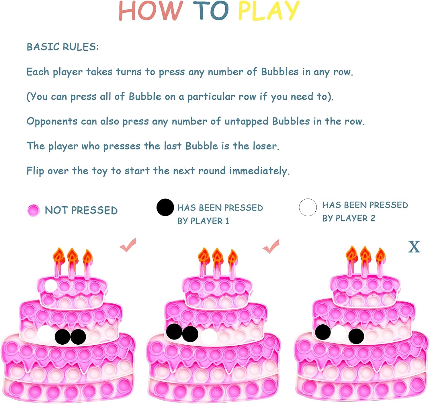 - 【fidget toys 4 pcs】5 packs: 1x gift fidget push bubble toys, 1x cake bubbles, 1x crown fidget bubble toy, 1 pizza push toy.