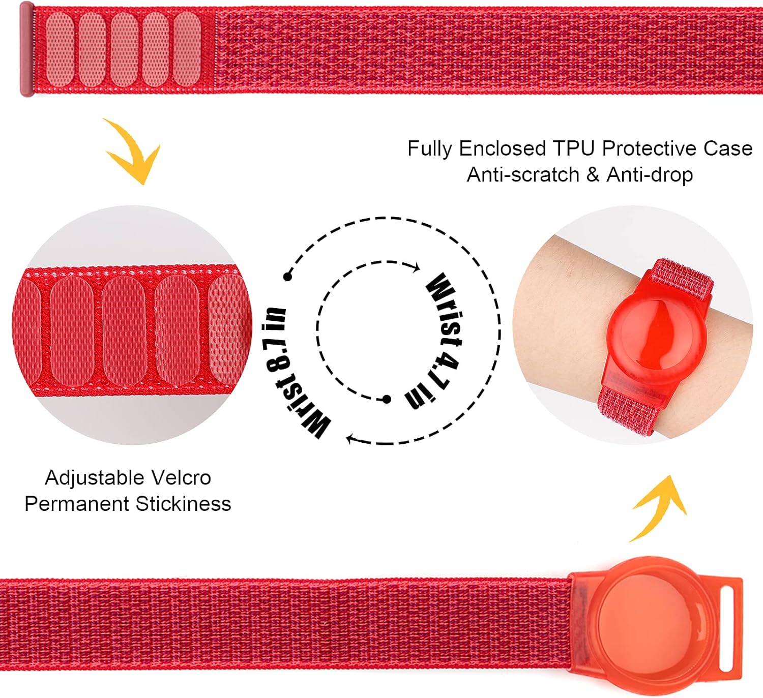 AirTag Bracelet for Kids, Apple Air Tag Protective Cover with Nylon Wristband, Anti Lost GPS Trackers Case Cover Elastic Watch Band for Toddlers Girls Boys Elders (Red)