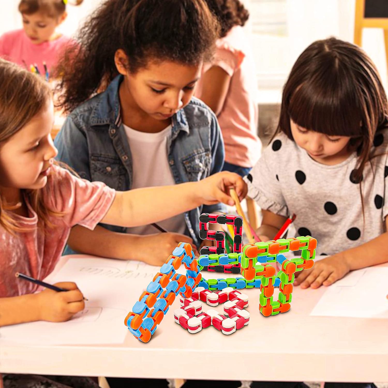 - IMPROVE CHILDREN'S MULTIPLE SKILLS: Each of the 24 links can pivot and lock into 5 positions, so you can create any shapes you want, such as letters, numbers, animal and more. bring challenges and fun to your fingers and brain. Not only help kids concentrate, improve their practical and reasoning skills, increase creativity and expand their thinking, but also help promote a sense of calm, reduce stress and anxiety.
