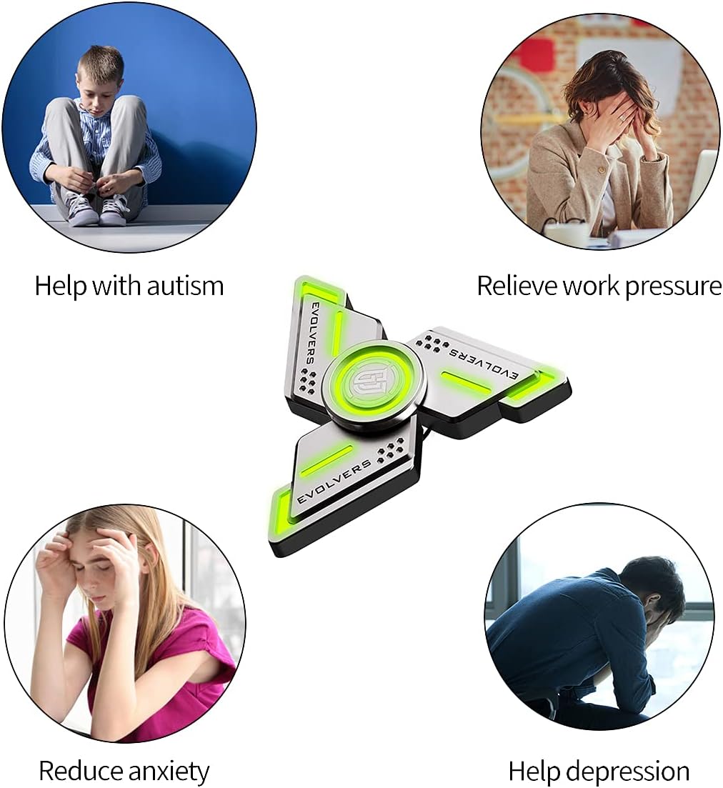 Cyclone Fidget Spinners,Silver Metal with Green Luminous,Durable High Speed Silent Bearing,Finger Hand Spinner,Relieve Stress & Anxiety,Toys/Gifts for Adults & Kids (DIY Accessories Included)