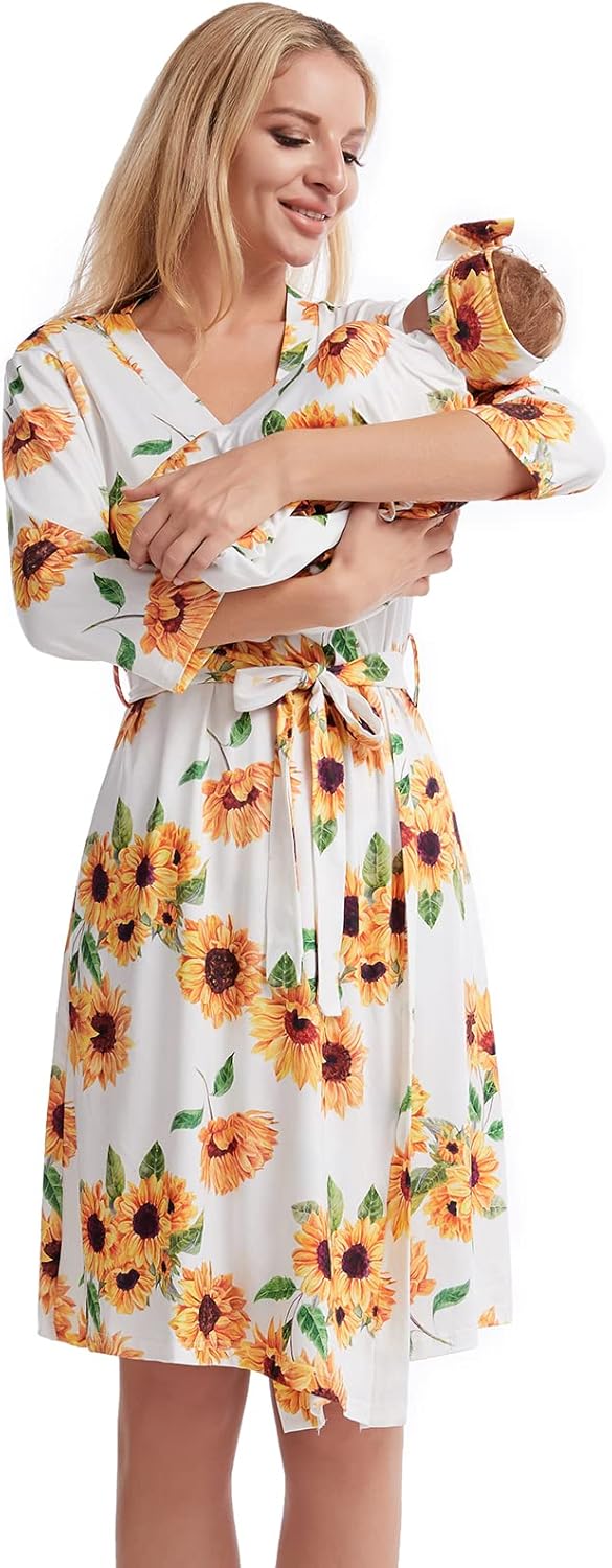 Galabloomer Maternity Robe and Baby Receiving Blanket, Matching Mommy Labor Delivery Robe and Swaddle Set