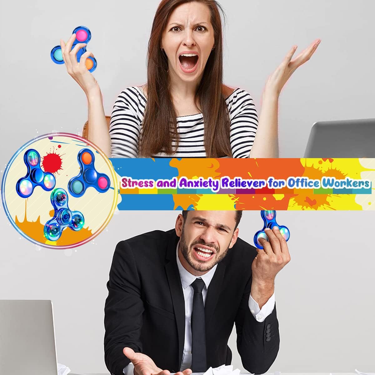 - 🎁【ANXIETY RELIEF AND STRESS REDUCTION HAND SPINNER】They are a perfect stress reducer for kids. In addition, It is also a great fidget spinner for people with ADHD, autism, and anxiety. With the pop bubbles fidget spinner light up, you will be able to curb bad habits such as nail biting and smoking. When you are alone, your boring time will pass away quickly.