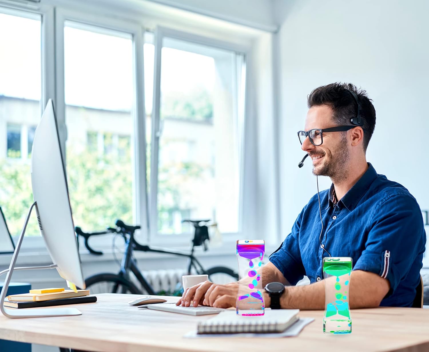- TWO DIFFERENT COLOR COMBINATIONS:Each bubbler contains two colors inside.Each box has two liquid motion bubbler timer in two different colors combination:blue-pink and blue-green.Each surprise starts with opening our liquid bubbler exquisite packing box.