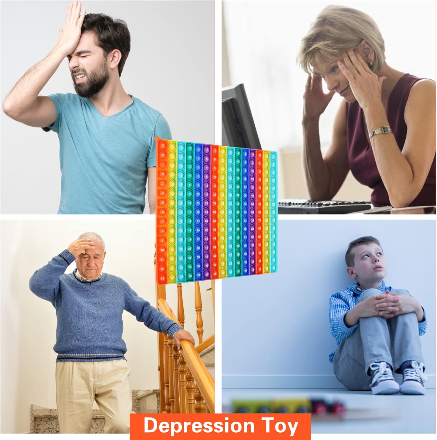 - 【Enlarged Size】30(L)*30(W)cm, 225 p00ps compare with other old version, it is much helpful for adult and child play together, more ways to play and more fun. P0pp fidget toys can effectively relieve anxiety and stress, or kill time at home. It is fantastic for people who are with autism or stress, simply p00p its bubble, the “P00p, P00p, P0pp” sounds can help relieve stress from anxiety and restore emotions.