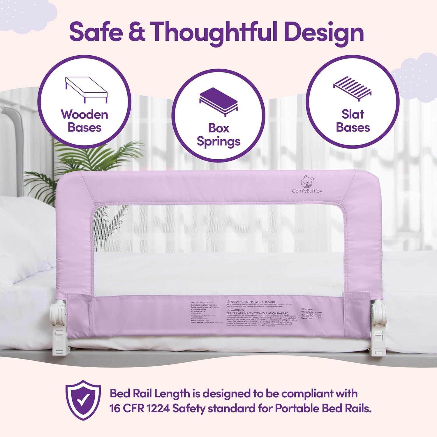 - EASY TO INSTALL - Our toddler bed rail includes a unique triple-way attachment system with velcro to attach to a slat bed base, adjustable straps to secure to box springs, and screws to attach to wooden bases. Choose ComfyBumpy for a safe sleep environment for your child, today!