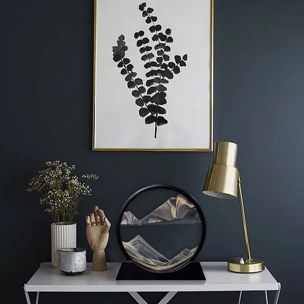 Aoderun Moving Sand Art Picture Round Glass 3D Deep Sea Sandscape in Motion Display Flowing Sand Frame Relaxing Desktop Home Office Work Decor (12", New black)