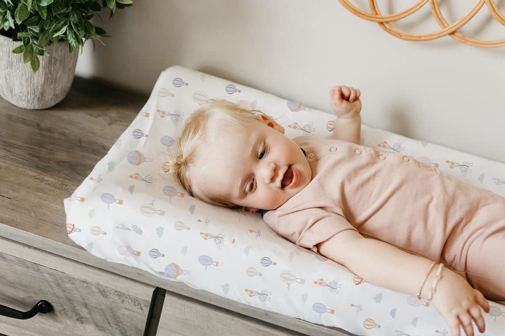 TotAha Premium Stretchy Changing Pad Covers (2-Pack)-Hypoallergenic, Silky Comfort, Buttery Soft, Calming Effect, All-Season Jersey-Knit 32 X 16 X 5'' Deep Pocket (Air Balloon & Sailboat)