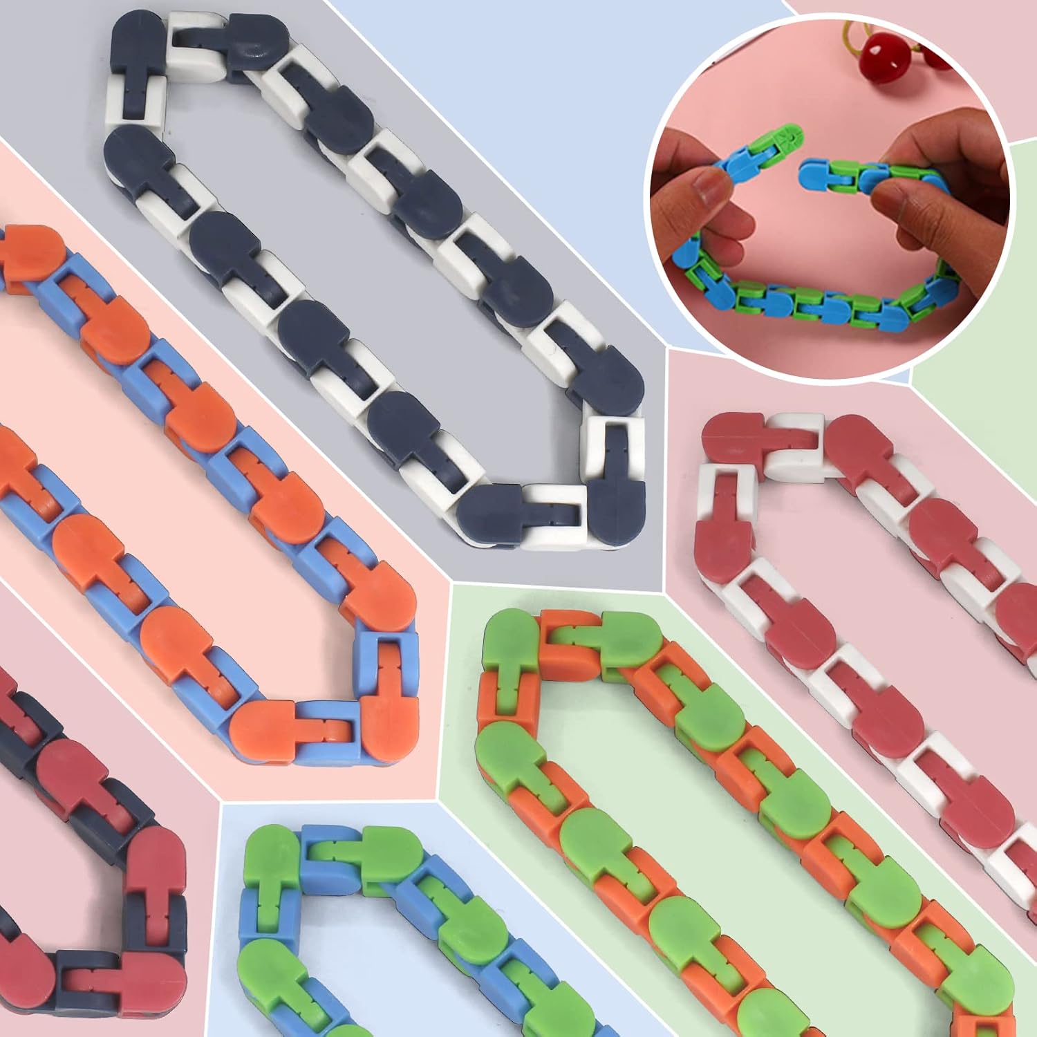 30 Pack Wacky Tracks Snap and Click Fidget Toys Finger Sensory Toys, 24 Links Snake Puzzles for Stress Relief, Party Bag Fillers, Party Supplies