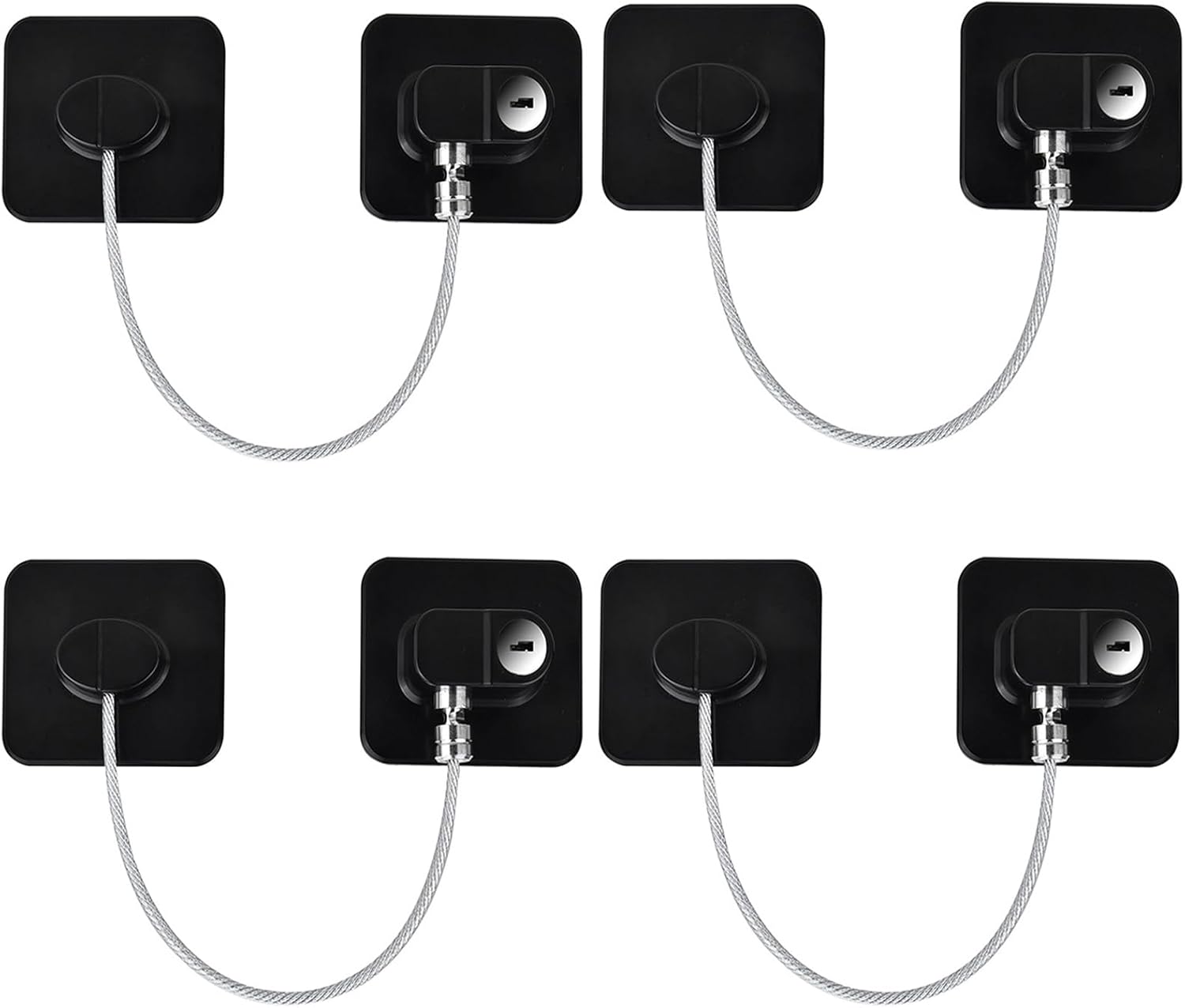 Fridge Lock (4 Pack),Refrigerator Lock with Keys,for Fridge, Cabinet Locks, Drawers, Dishwasher, Toilet and Child Safety Cabinet Locks, 3M Adhesive No Drilling (Black 4pcs)