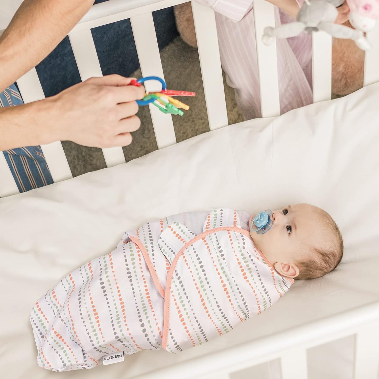 - Adjustable: Swaddling your baby snugly becomes easy with our adjustable fabric wings that fasten securely with hook and loop to create the perfect fit. You can adjust the tightness of the baby swaddle wrap with your baby's growth