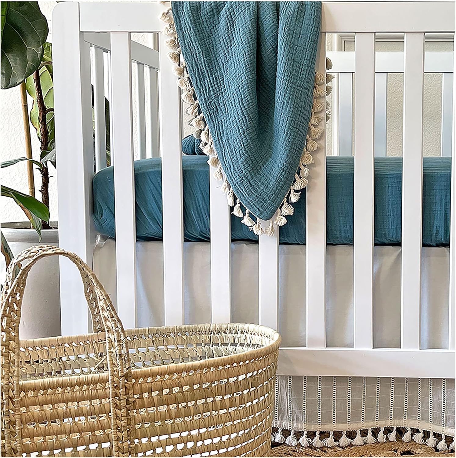 Crane Baby Soft Cotton Fitted Sheet for Cribs and Nurseries, Riverstone Blue, 28”w x 52”h x 9”d