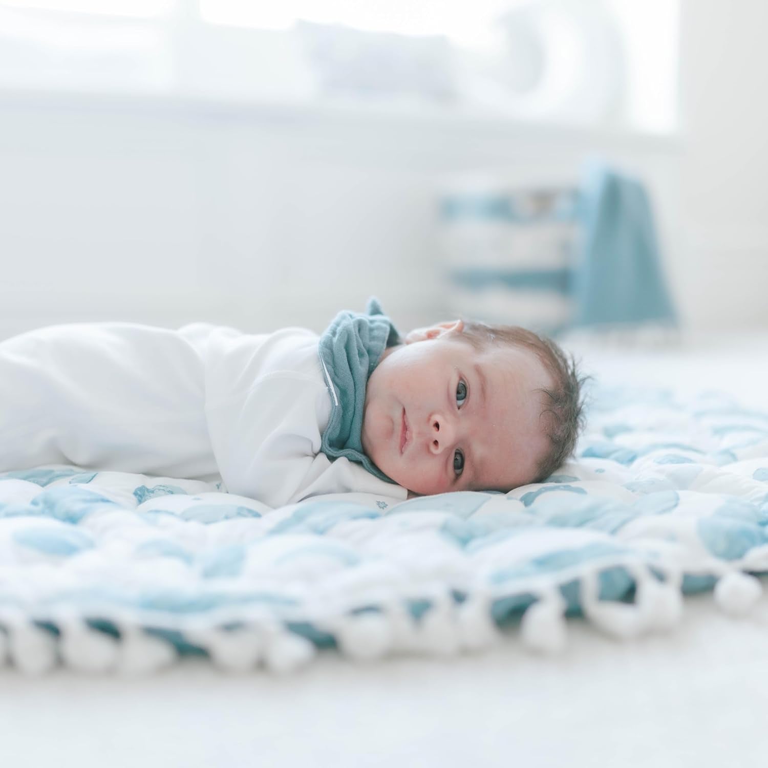 - STIMULATING: Stimulate your baby's visual senses and cognitive development with this playmat, designed with an engaging whale print. Perfect for tummy time and floor activities, this mat adds a playful touch to your nursery decor.