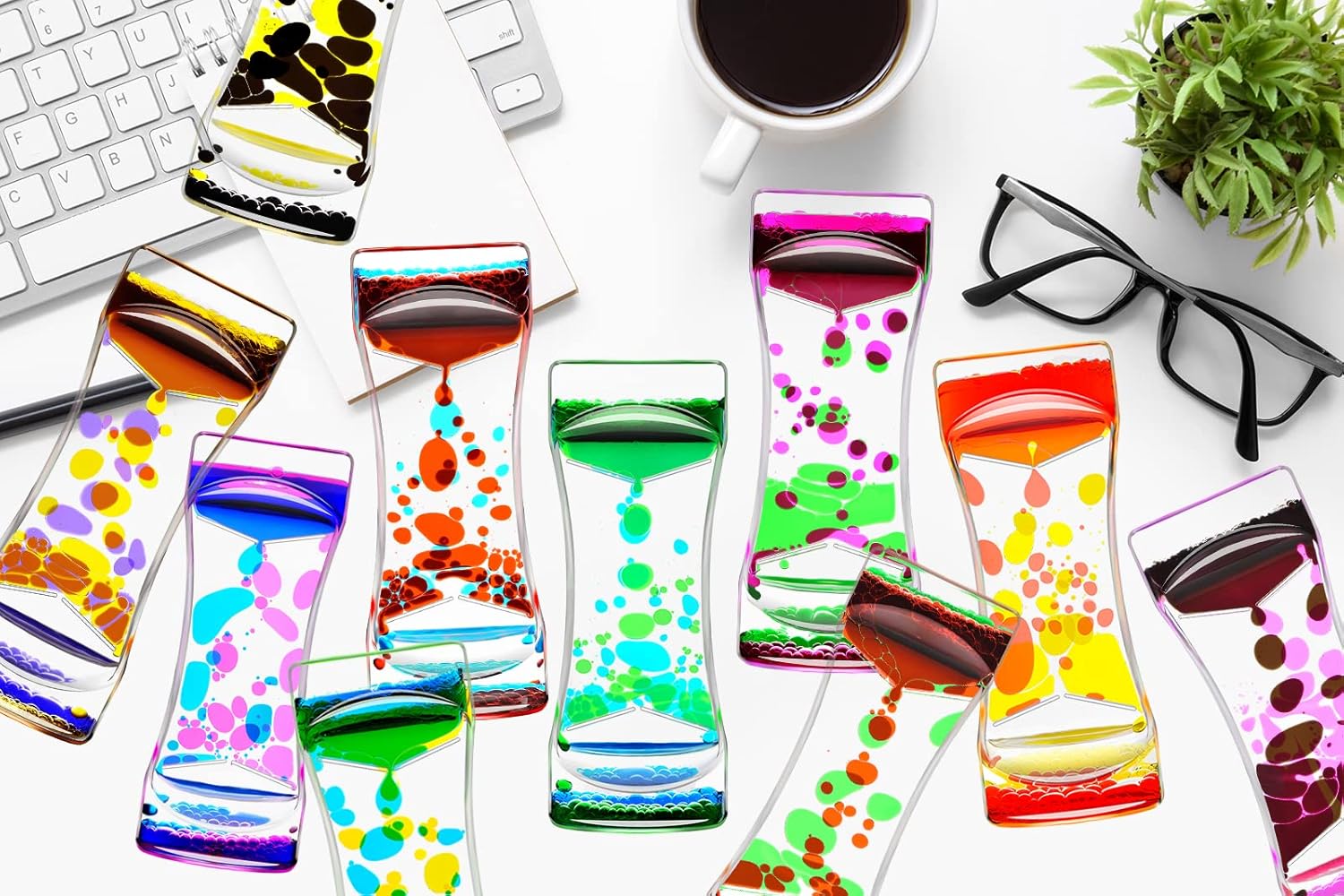- 2.Liquid Bubbler Timer Toys: Great desk sensory play top toy for all ages ranging from children to adults. A great Home Ornament and office relax decor. The soothing rainbow colors remind you to slow down, relax and enjoy every moment. The liquid motion bubbler will help your calm down or focus on something.