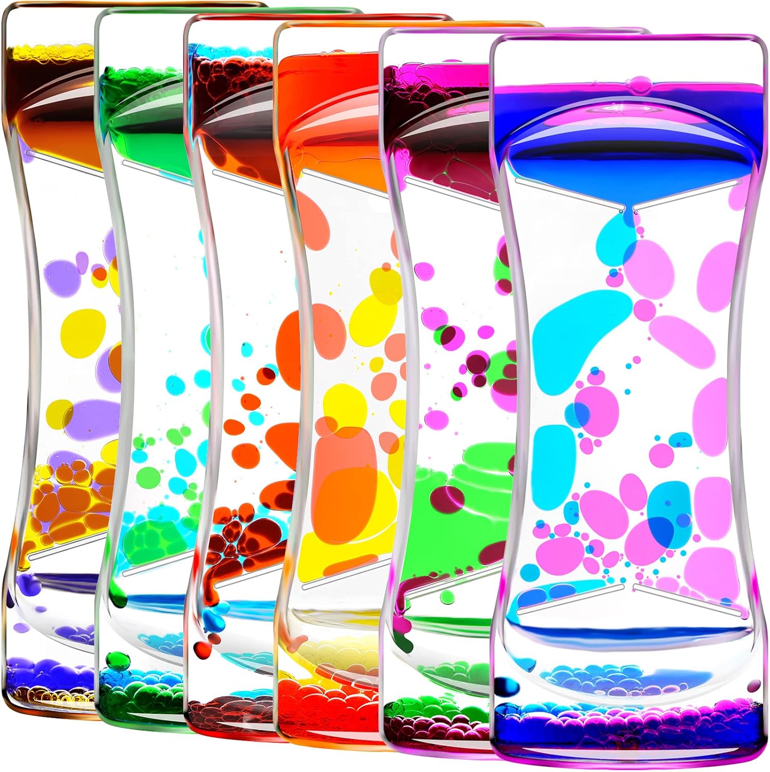 Liquid Motion Bubbler Set of 6 Different Rainbow Colors for Sensory Toys, Fidget Timers Liquid Toy for Home Office, Oil Drop Water Hourglass Desk Toys with Gift Box