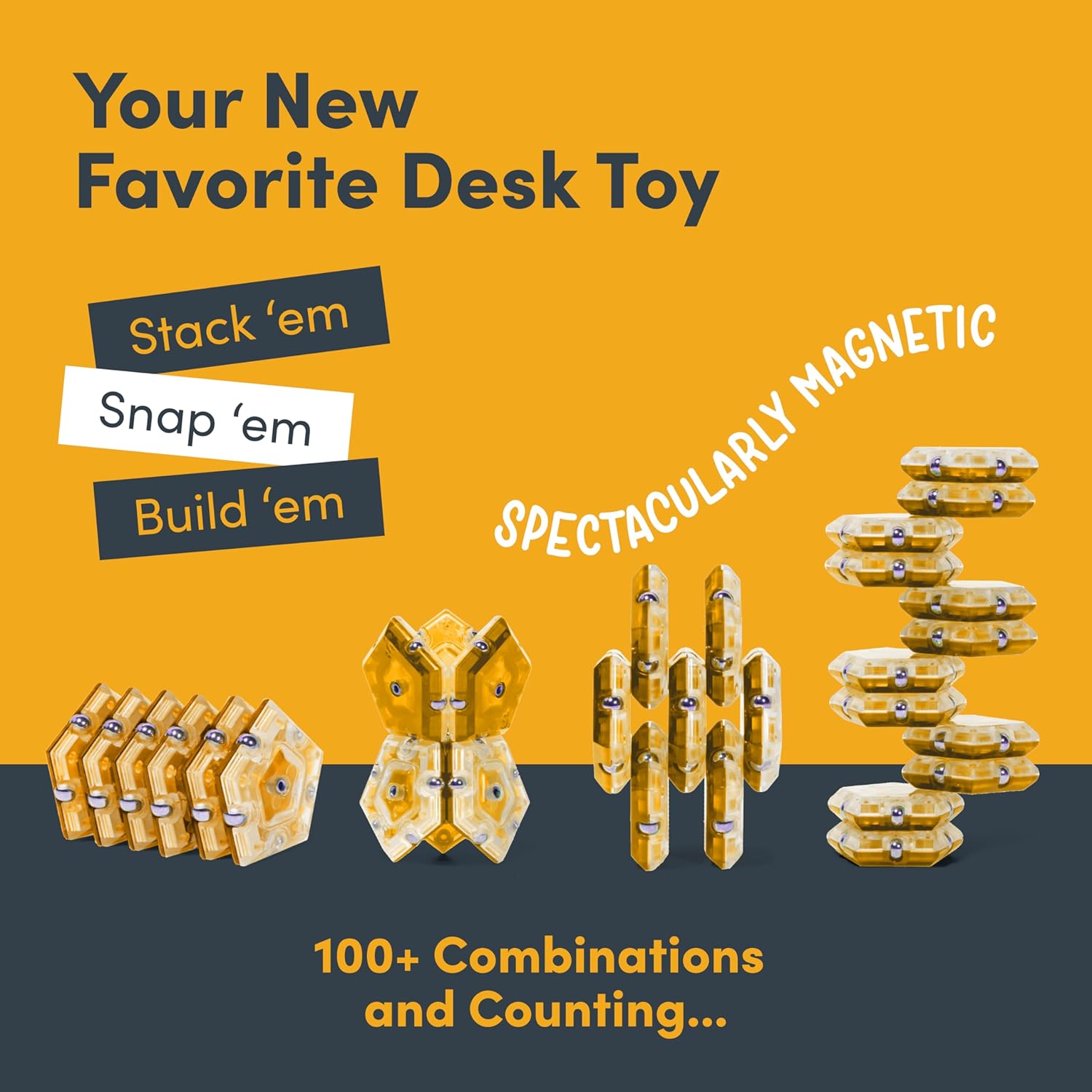 - STACKABLE, SHAKEABLE, SNAPPABLE, BUILDABLE: Use magnetic magic to build gravity defying structures then use your hand as a hammer to mess up your masterpiece. Have a jumble of pieces? Pile them into your palms and shake vigorously. They’ll magically self-align every time!