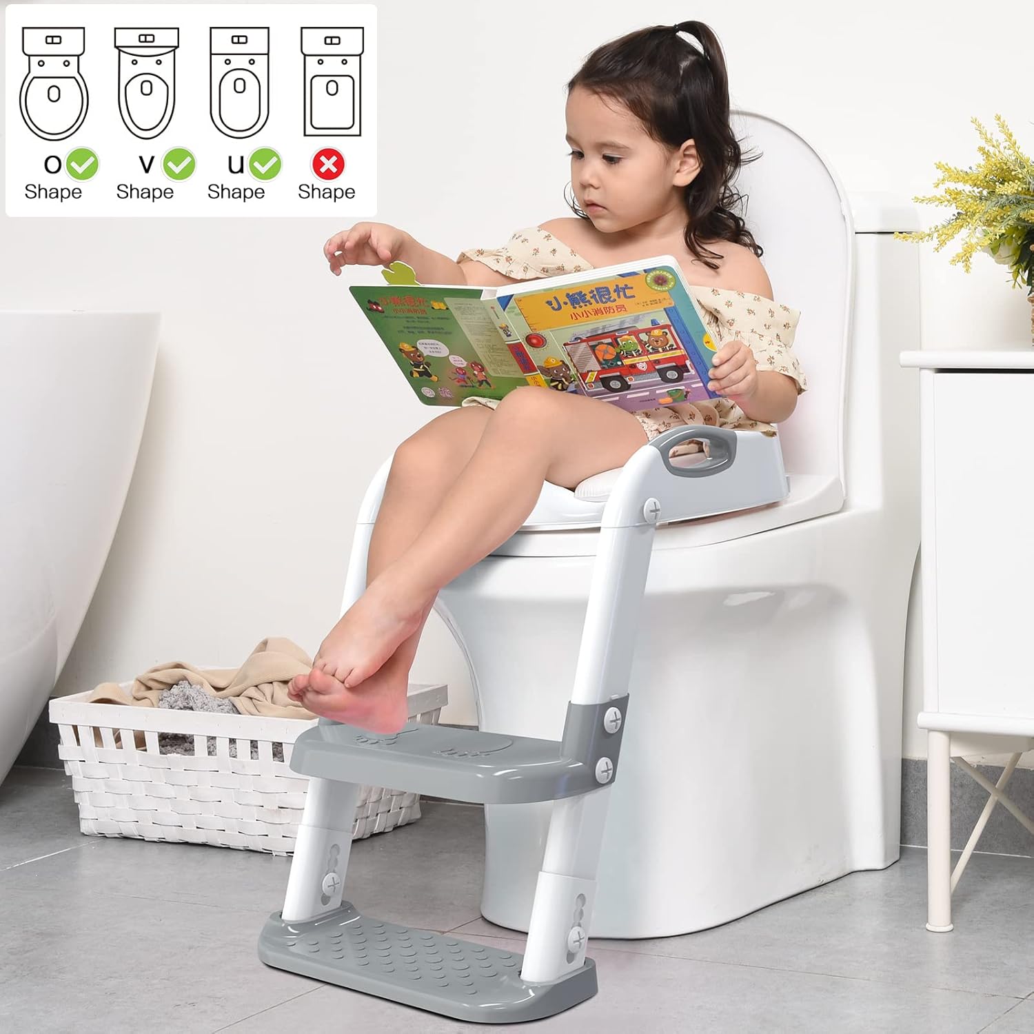 SKYROKU Toilet Potty Training Seat with Step Stool Ladder, Toddler Potty Seat for Kids and Toddler Boys Girls, Splash Guard and Safety Handles(Grey)