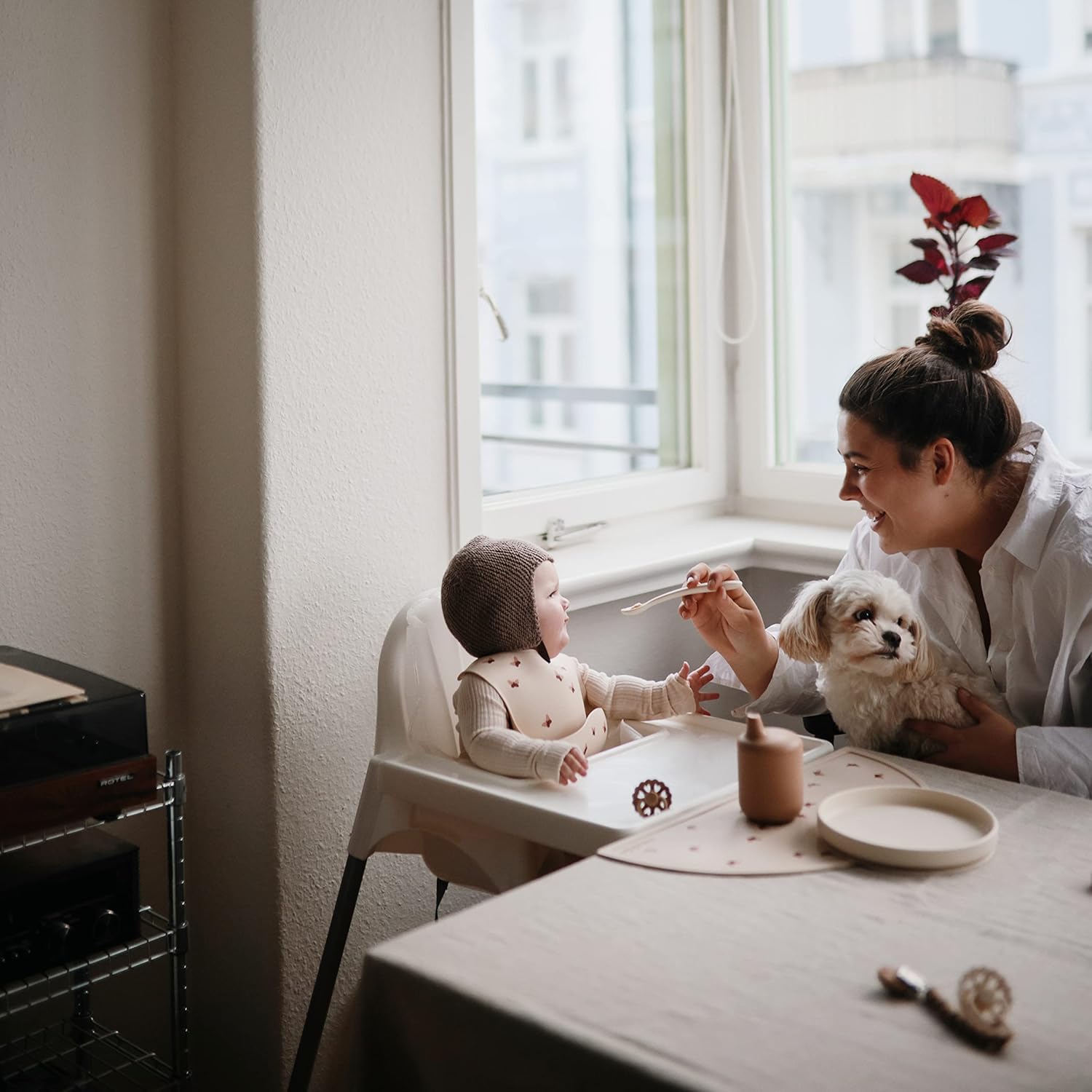 - Introduce your baby to solid food with Mushie’s silicone feeding spoons! Make mealtime more fun for your baby with these beautiful baby-friendly spoons in various colors