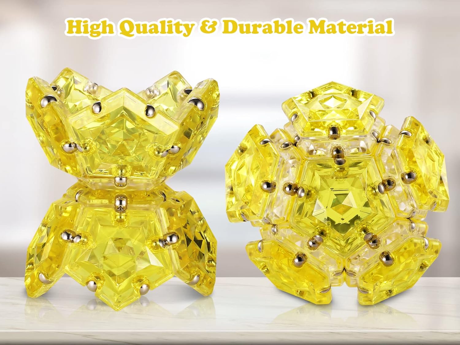 - [Excellent Quality, Unique Design]: Nothing compares to the quality & unique design of this magnetic balls, each panel has a stunning crystal and smooth surface of high quality, durable. Made with 60 high strength neodymium magnets, magically self-aligning to over 100 shapes and formations.