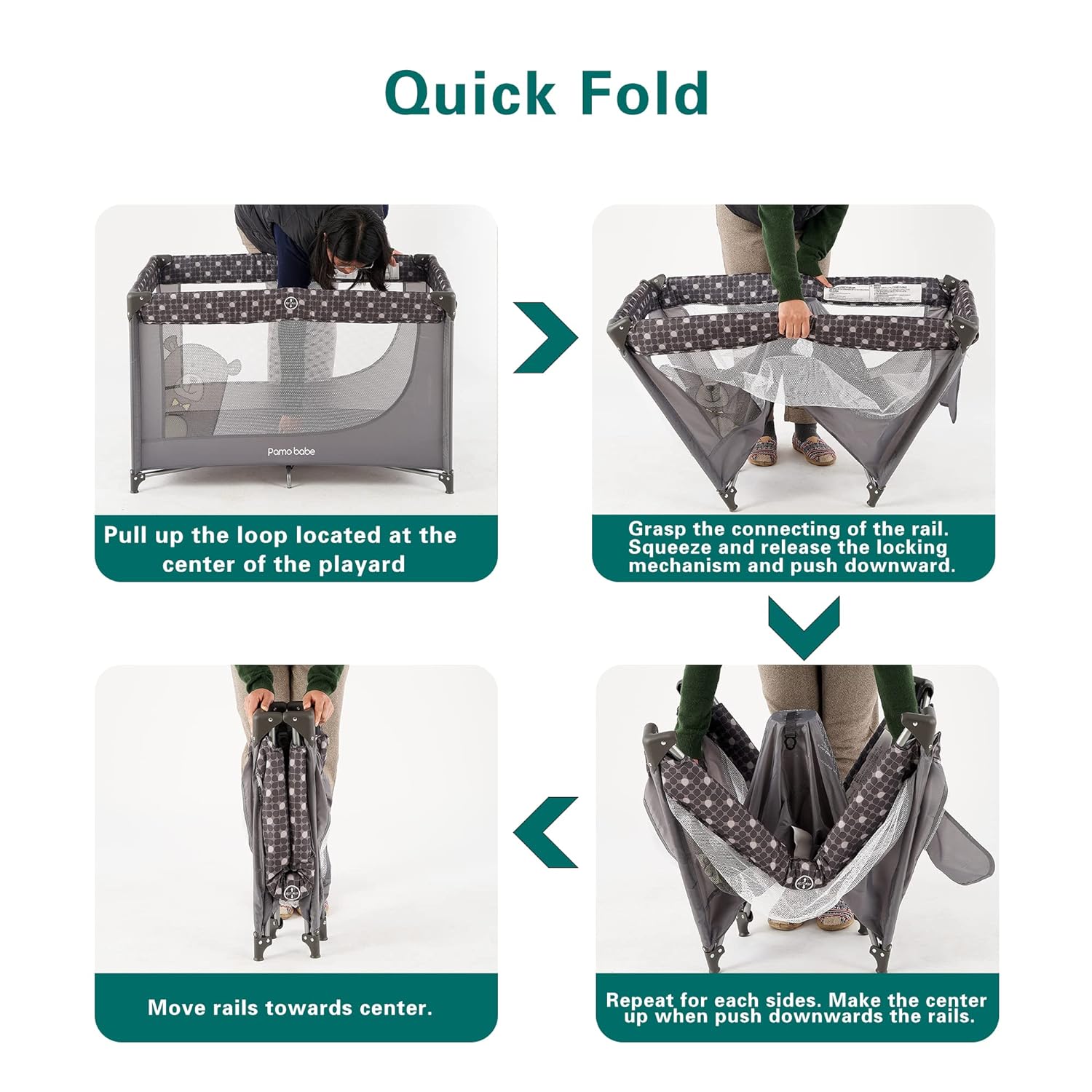 Pamo Babe Portable Crib Baby Playpen with Mattress and Carry Bag Grey