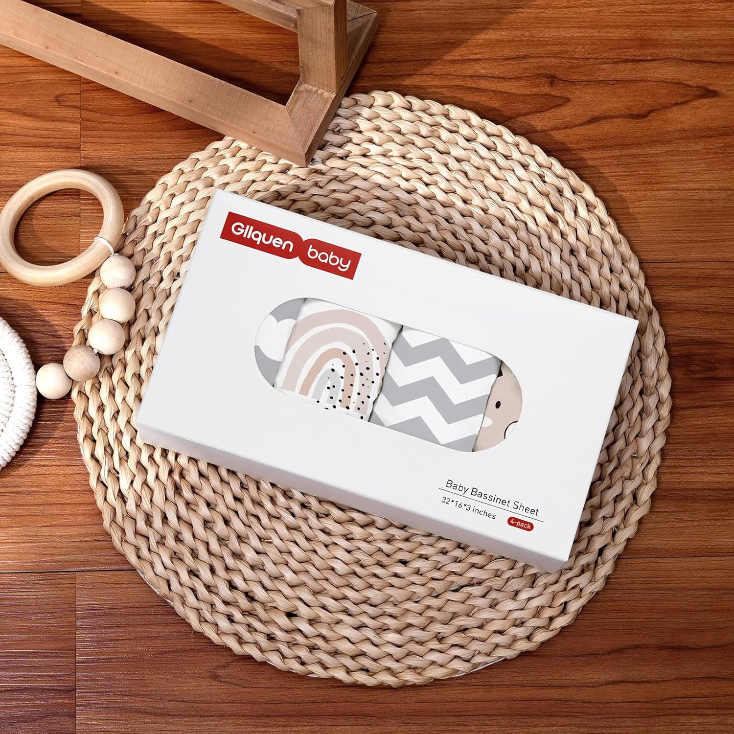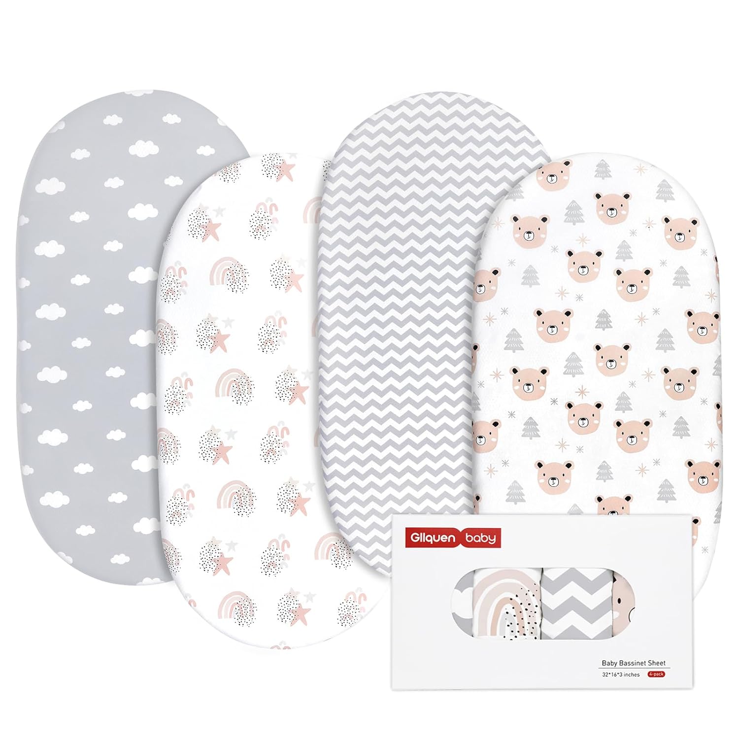 Gllquen Baby Bassinet Sheets 4 Pack, Breathable Cozy Fitted Mattress Sheet, Elastic Travel Crib Fashionable Pattern, Standard Cradle Safe Sheets for Baby Boys Girls 32"x16"(Rainbow)