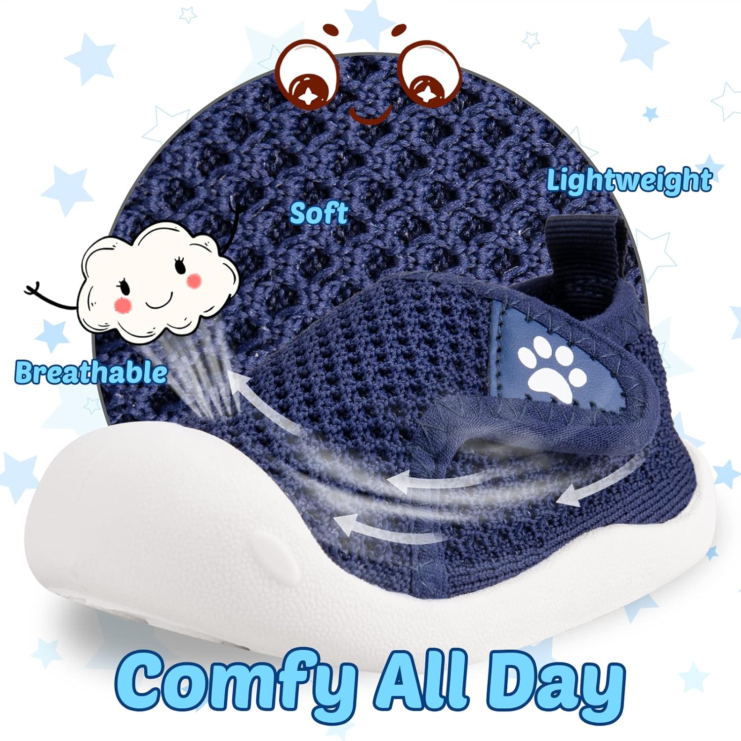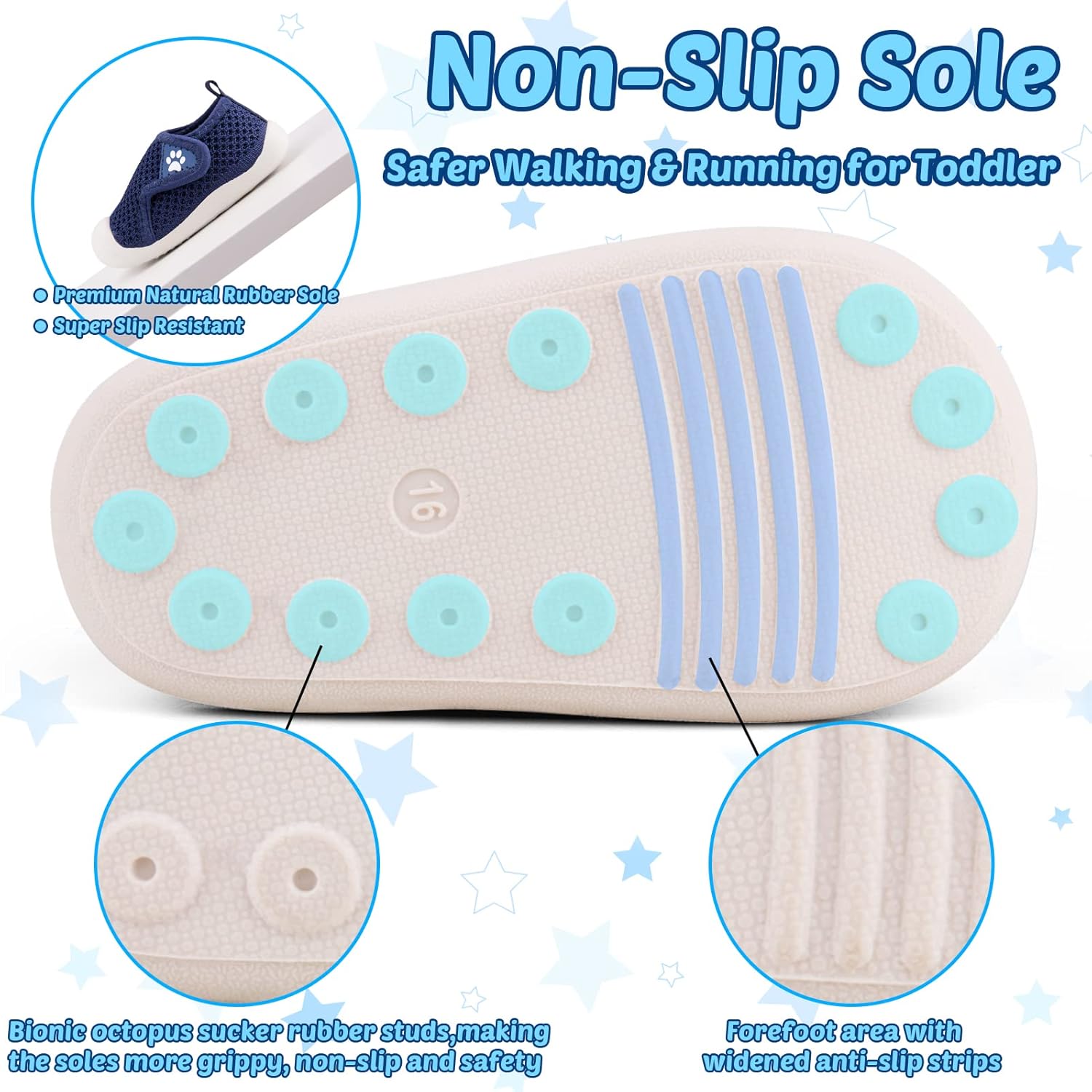 • Non-slip Safer Soles: Toddler walking shoes are soft and lightweight, makes toddler walking feel natural. The non-slip and abrasion-resistant rubber sole is made ofhigh quality natural rubber, making the sole more grippy, slip-resistant and safty. Non slip sole prevents your babies from slipping, helps baby girl boy learn balance as their toes grip the ground, toddlers will enjoy crawling, walking, running happily.