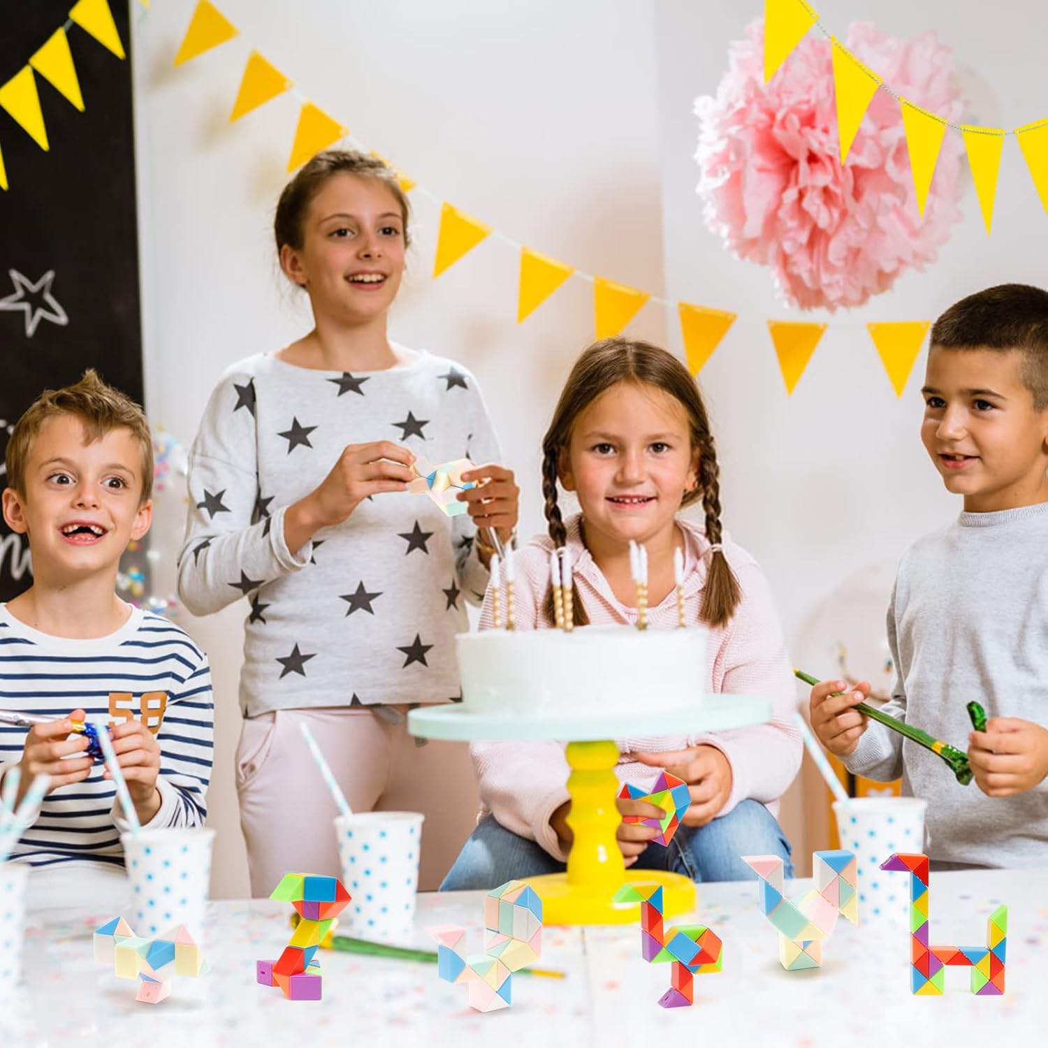 - Kid Party Favors Toy - Great thing about the MIni Puzzle Favors is that you and your child can play with it almost anywhere, . This magic snake cube is very handy to carry anywhere in your pocket, in the house, in the office, or in classrooms.