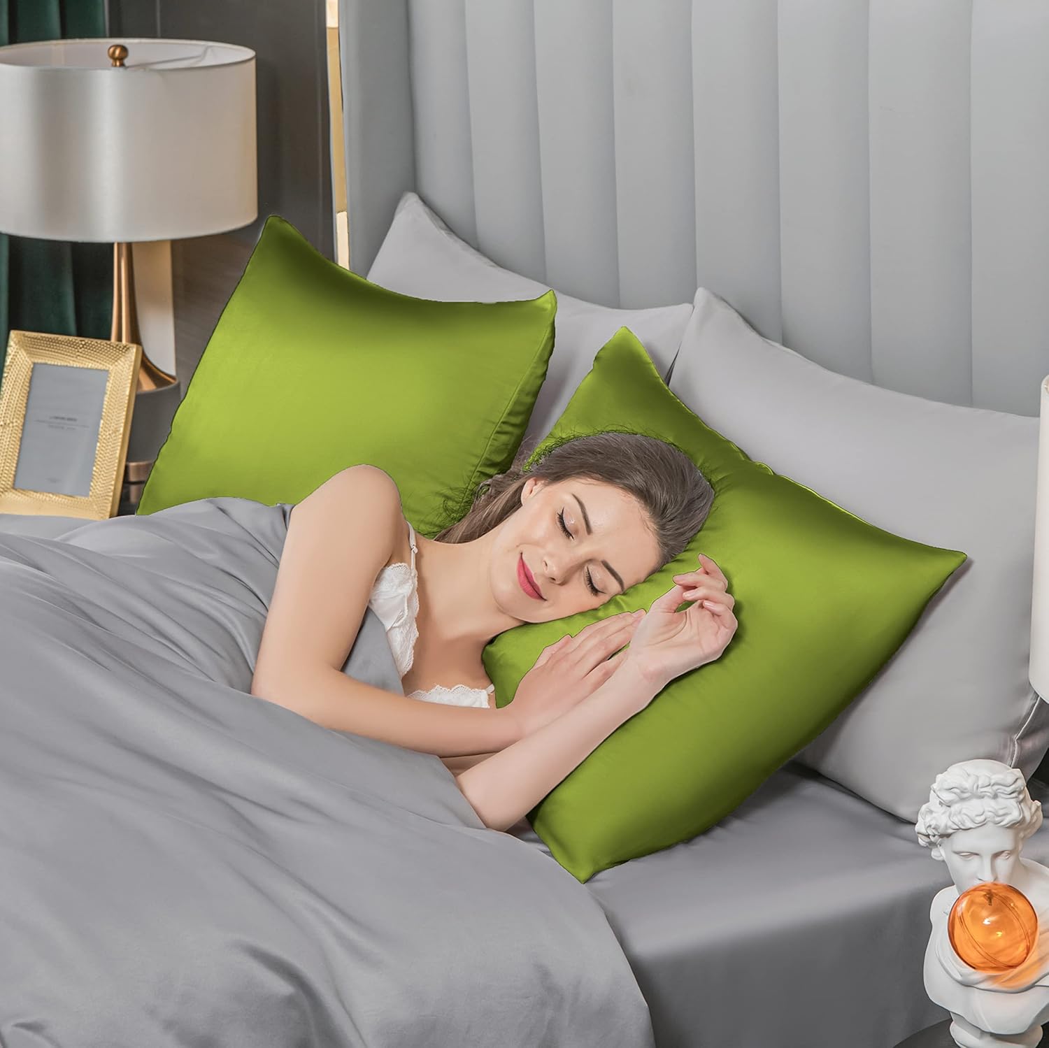 Mulberry Silk Pillowcase for Hair and Skin,King Size Cooling Silk Pillow Case with Hidden Zipper,Allergen Proof Dual Sides Soft Breathable Smooth Silk Pillow Cover for Women(King,Avocado Green)